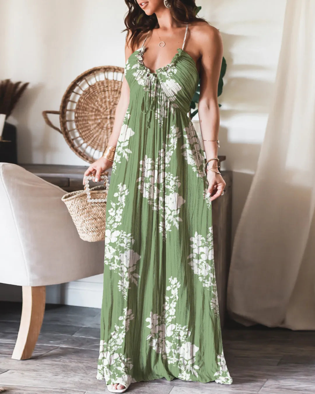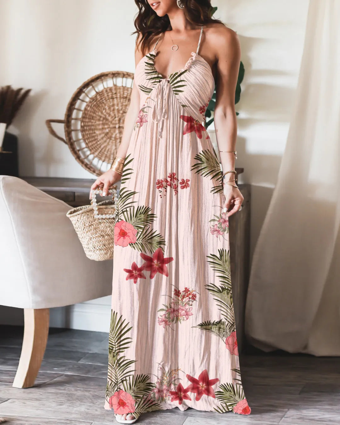 🌸Up to 50% off🔥 Summer Sales👗Sleeveless Print Tie Pleated Dress