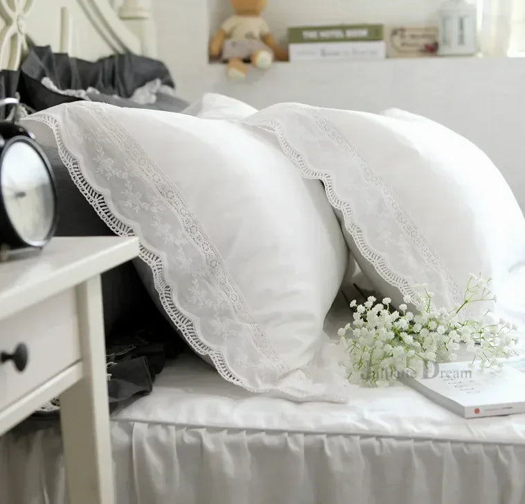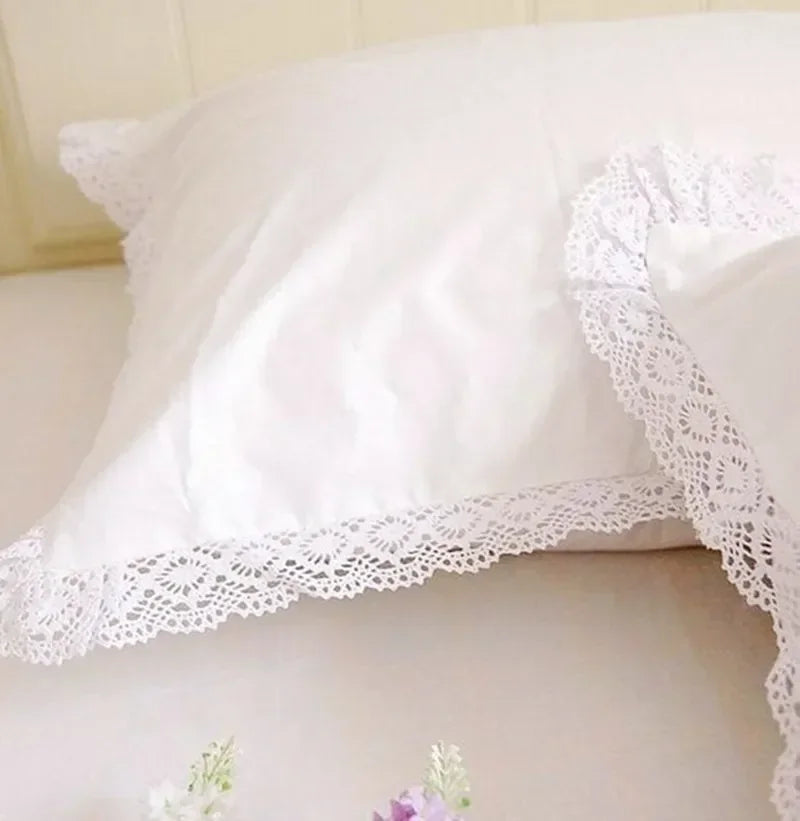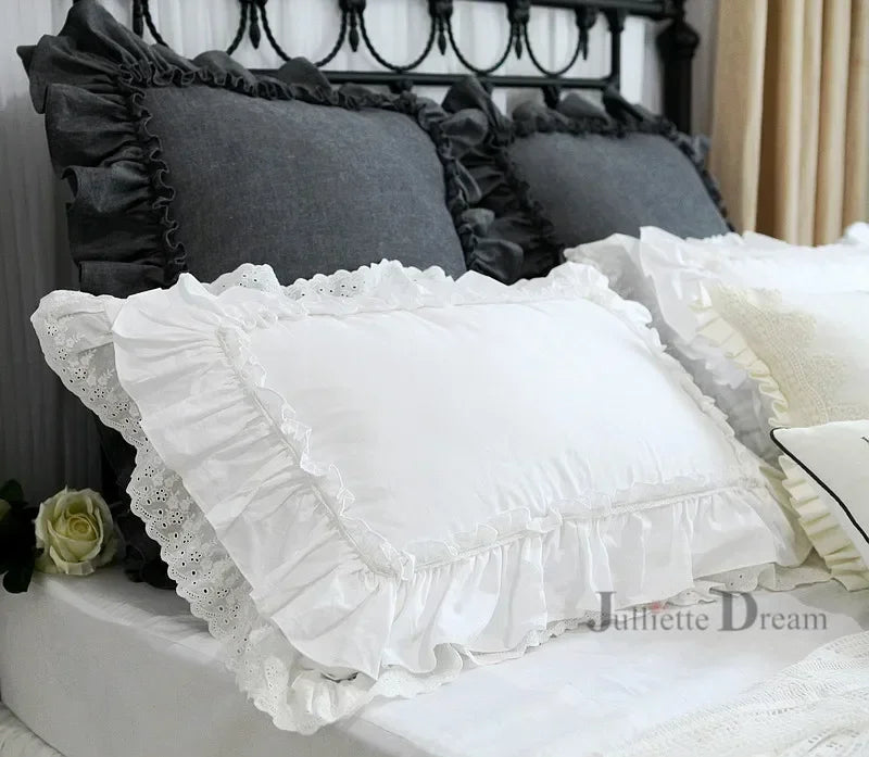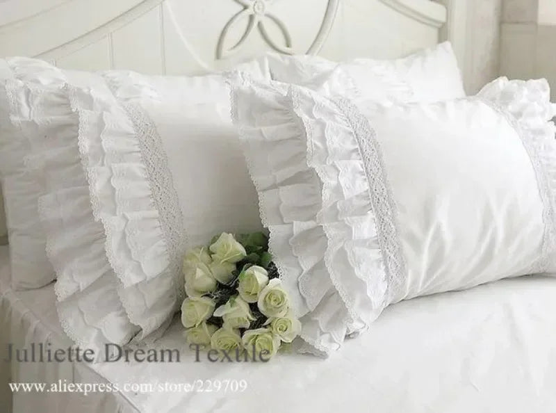 1 piece Princess Pure White Double Layer Lace Flounced Cotton Wedding Pure Cotton Bedding Pillowcase pillow cover fall decor