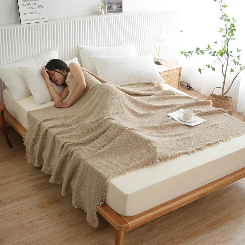 100% Cotton Blanket Yarn Dyed Shawl Tassels Style Plaid Jacquard Blankets Skin-friendly Bed Linen High Quality Gift cobertor