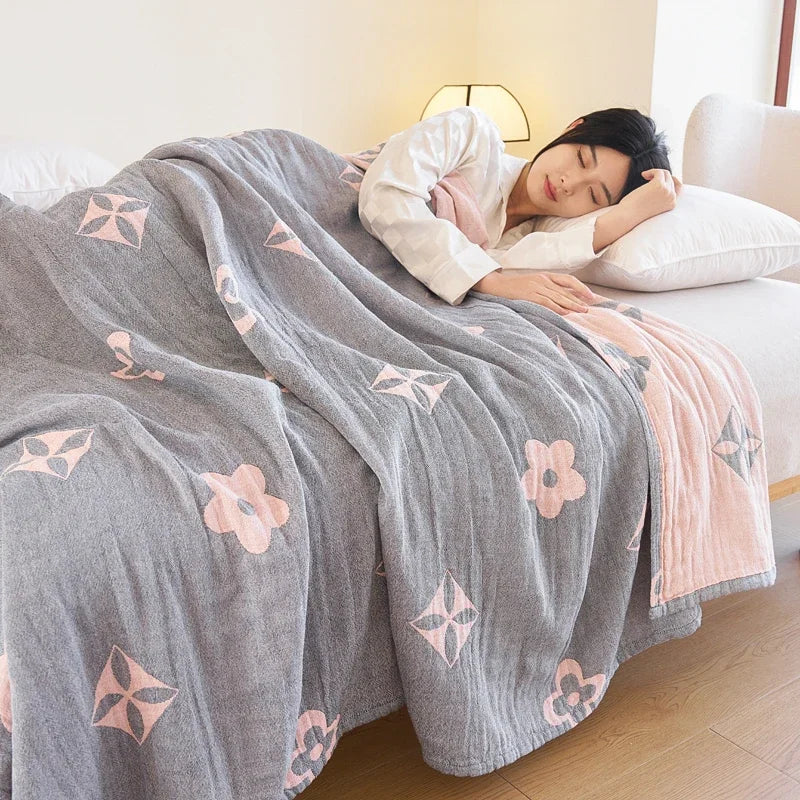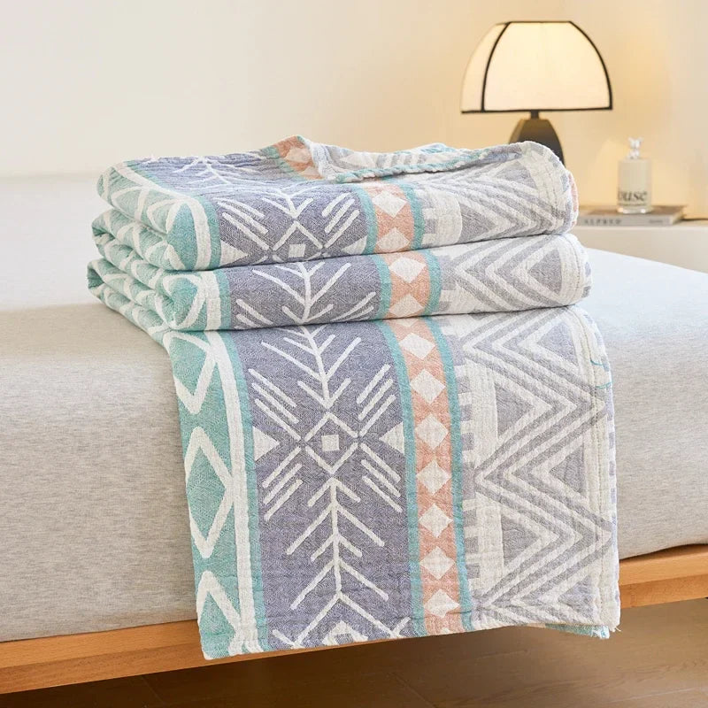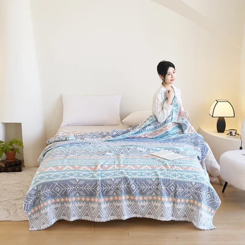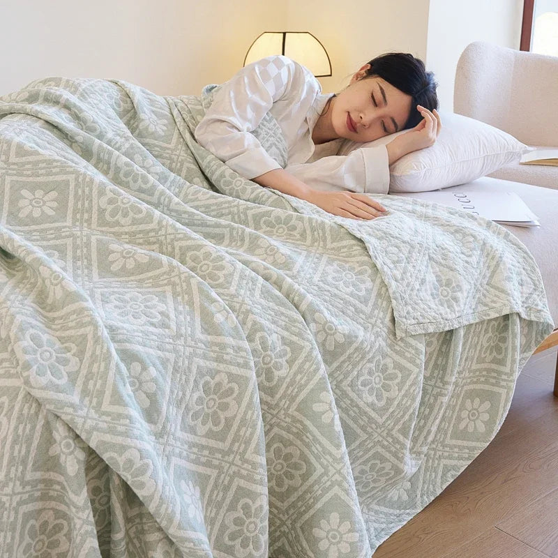 100% Cotton gauze summer blanket breathable bed linen Jacquard bed plaid light weight home Blankets and bedspreads Non shrinking