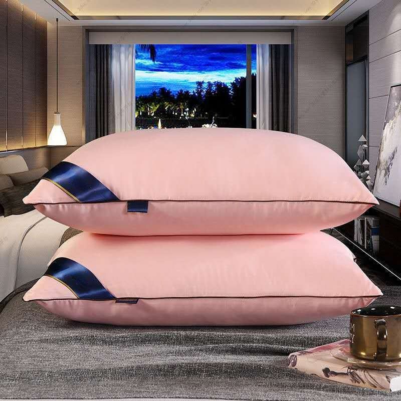 100% Cotton Pillow Bedroom Bed Sleep Cervical Pillow Middle-high Pillow Core Frosted Thickened Machine Wash Quilt Cover White