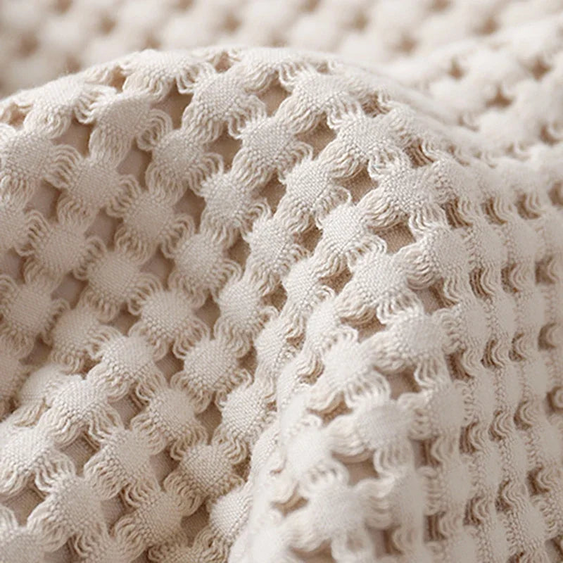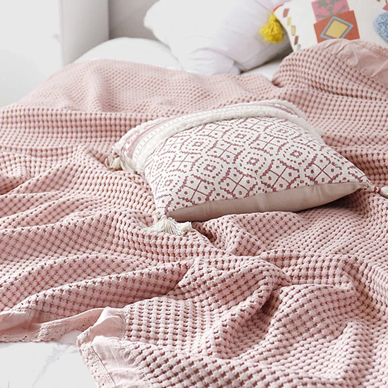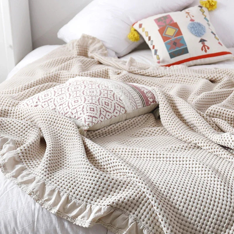 100% Cotton Soft Bed Plaid Home Japenese Knitted Blanket Corn Grain Waffle Embossed Summer Ruffles Warm Plaid Throw Bedspread