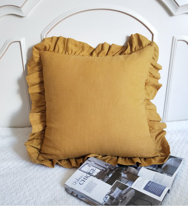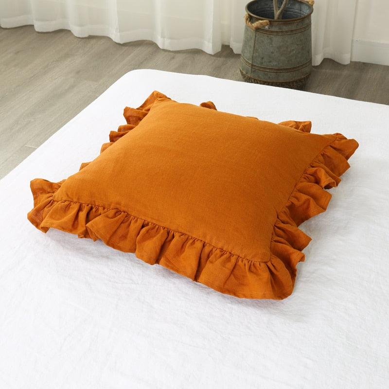 100% Pure Linen Ruffle Throw Pillowcases,Soft Comfortable Cushion Cover,Home Decor Sofa Pillows Cover,Living Room Couch Ornament