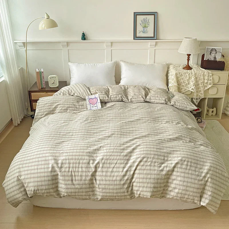 2025 New All-cotton Washed Cotton Single Quilt Set Printed Plaid Duvet Cover 150x200 220x240 Skin Friendly Bedding