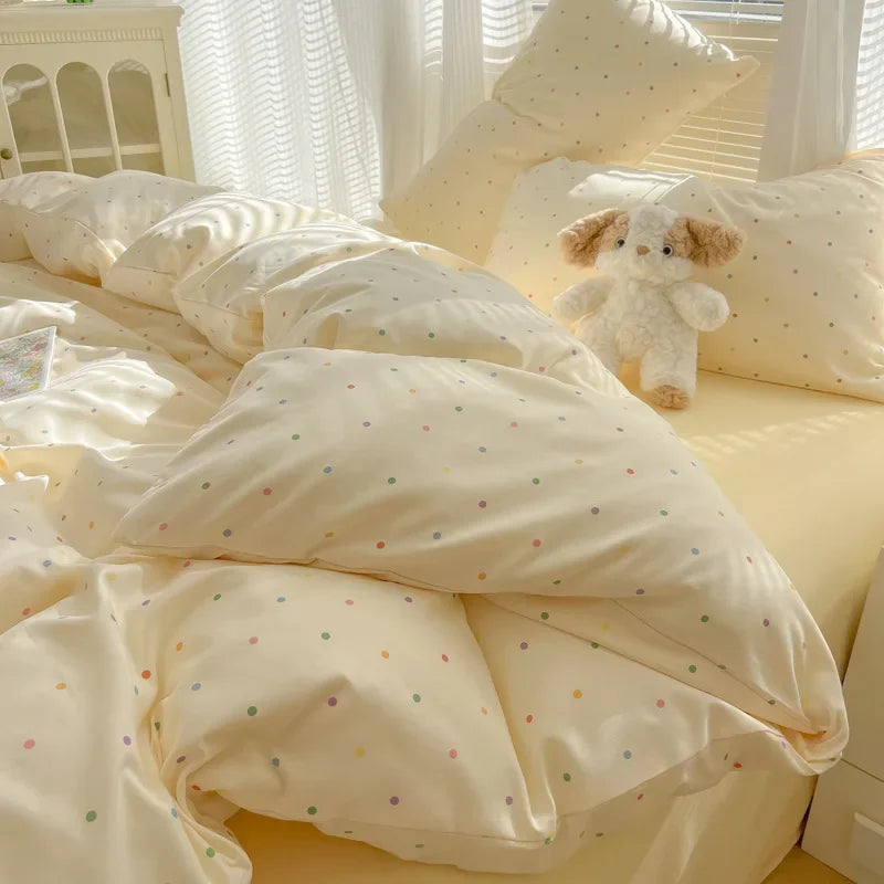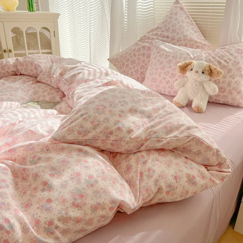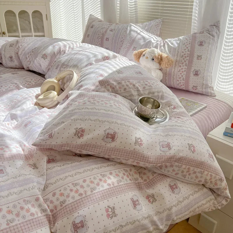 2025 new class A aerobic knitted cotton printing small fresh four-piece set. bed sheet. bed hat four-piece set