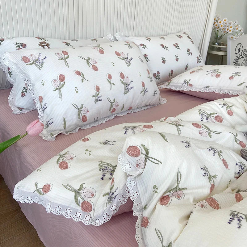 2025 New Knitted Cotton Bedding Set 1.2m 1.5m 1.8m Size Bed For Girls Women Room Decoration Bed Sheets With Pillowcases