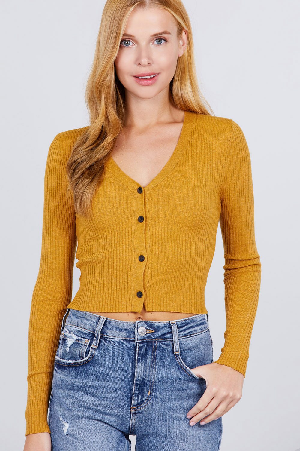 LONG SLEEVE V-NECK W/BUTTON DOWN CROP CARDIGAN