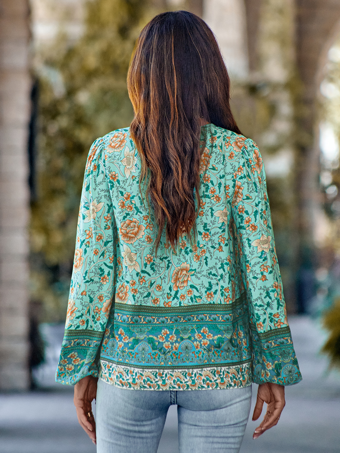Decrease quantity for Autumn Winter Casual Women Clothing Printed V neck Loose Long Sleeve Top Women