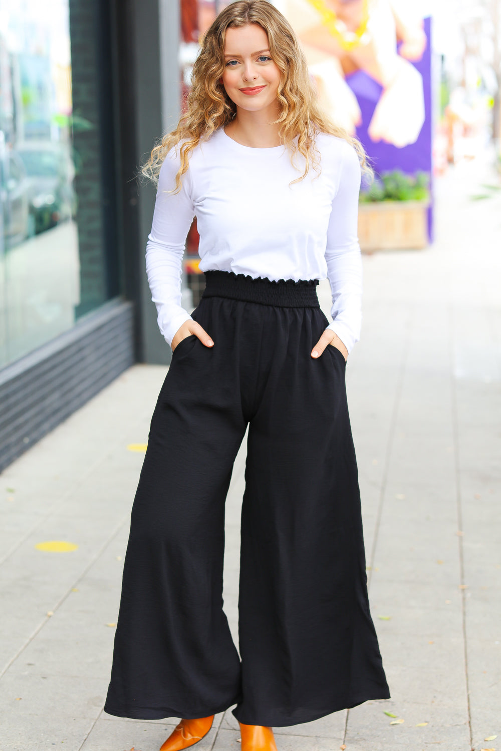 Relaxed Fun Black Smocked Waist Palazzo Pants