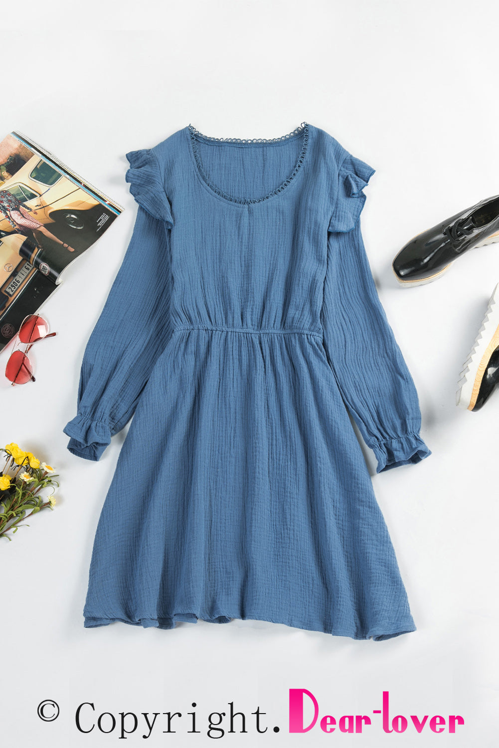 • This short dress made of crinkled fabric is graceful and elegant to show your fashionable taste and personal charm