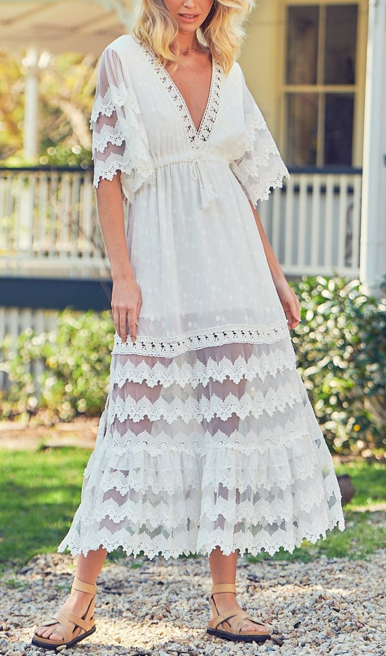Boho V Neck Layered Lace Dress