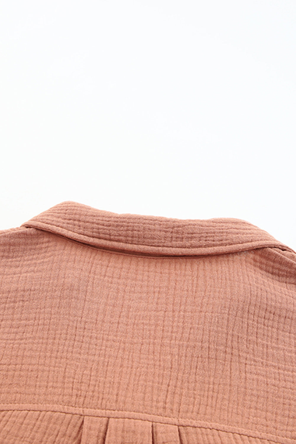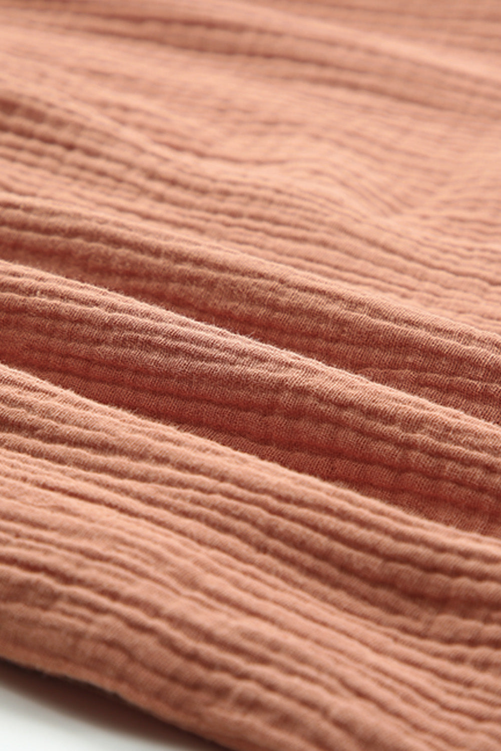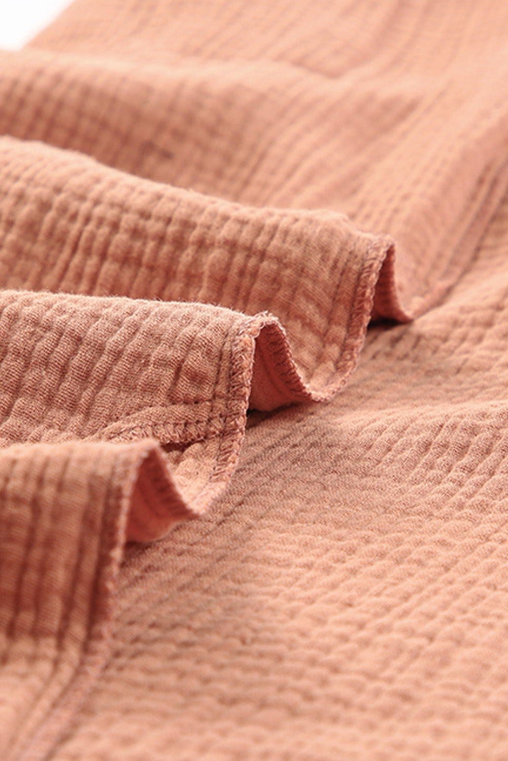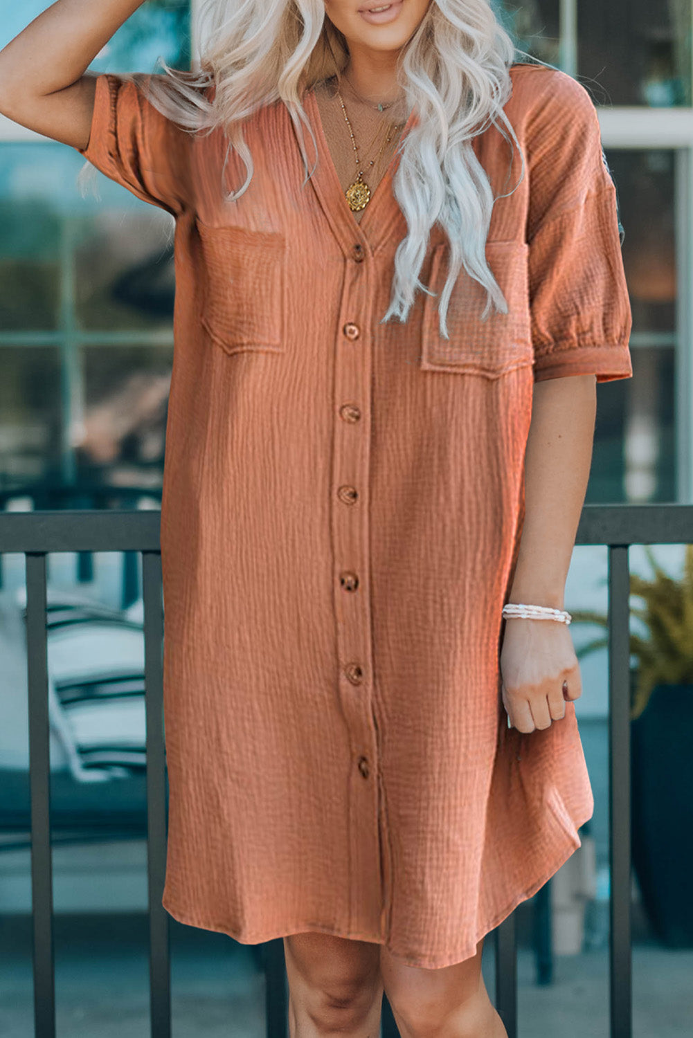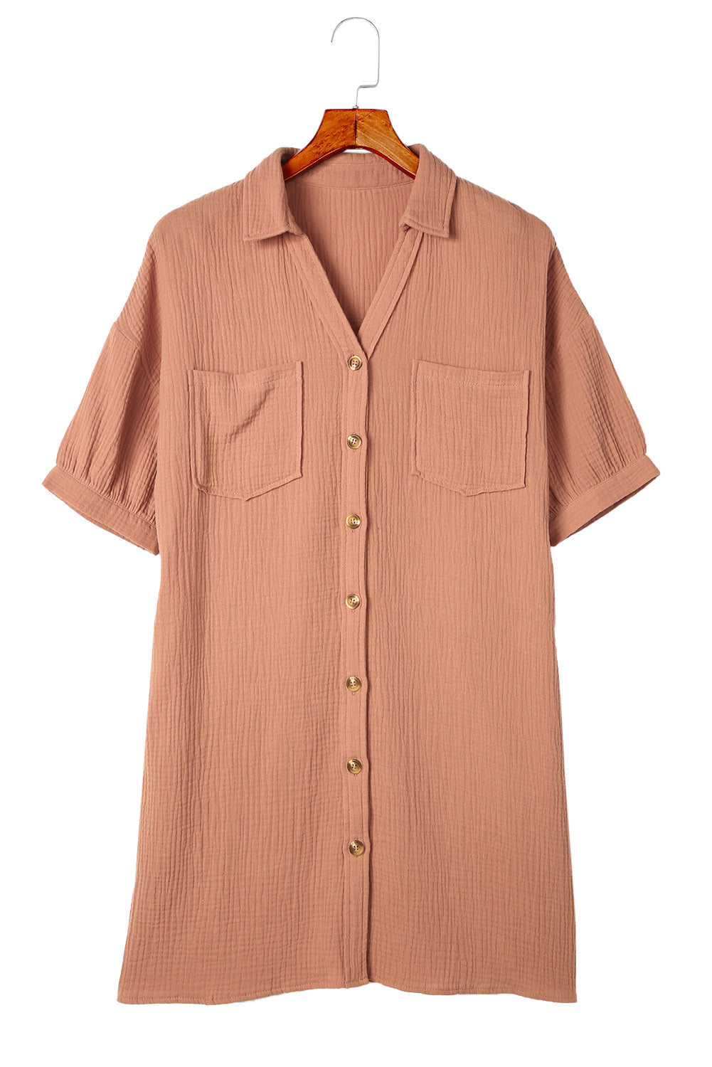 Brown Crinkle Textured Joint Bubble Sleeve Shirt Dress