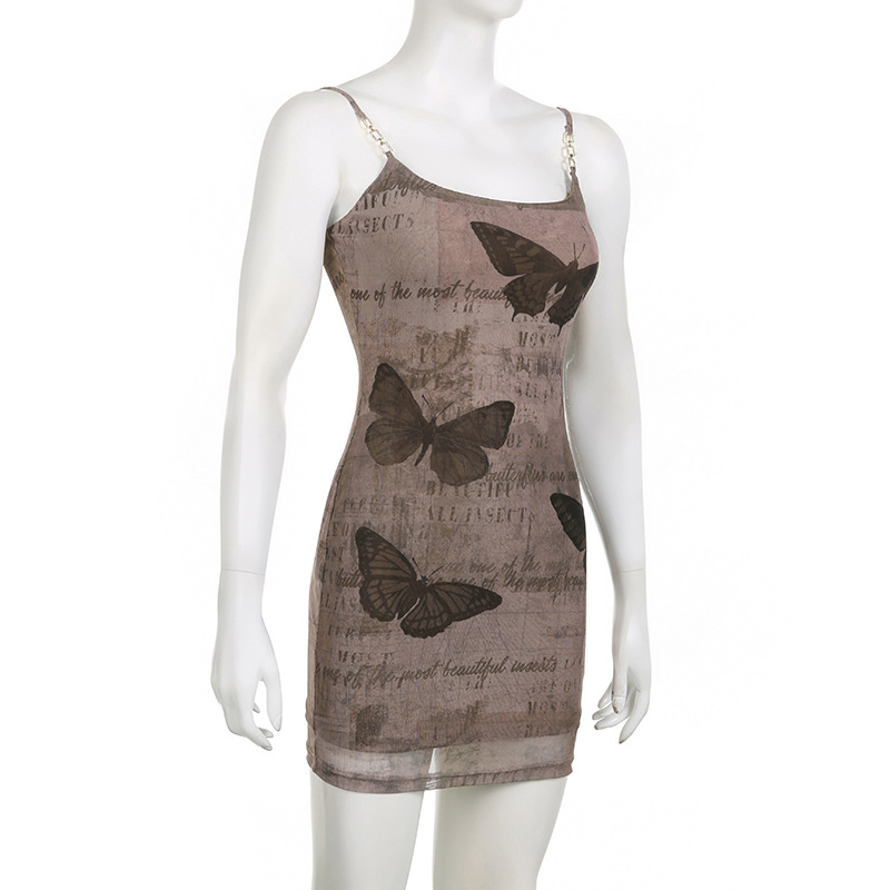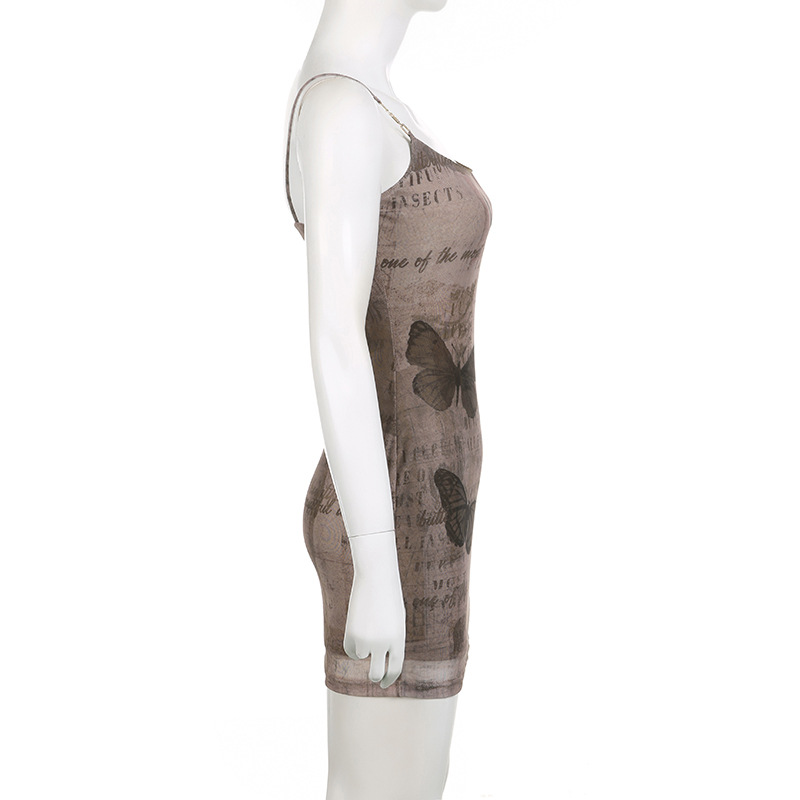 Butterfly Print Contrast Color Basic Slim Fit Sheath Sexy Dress Sexy Short Strap Dress