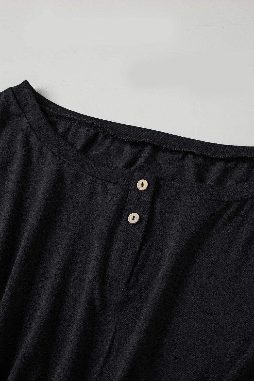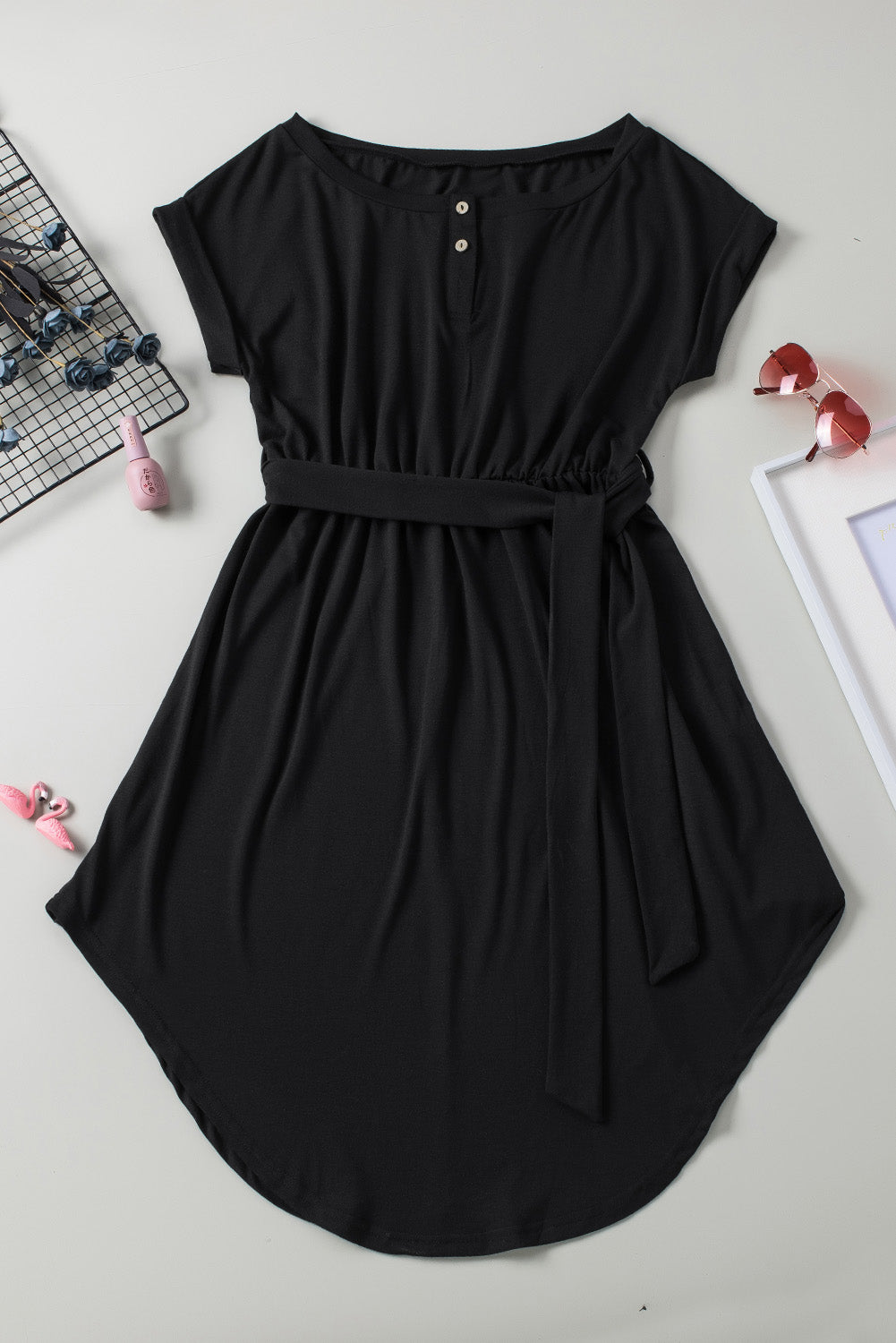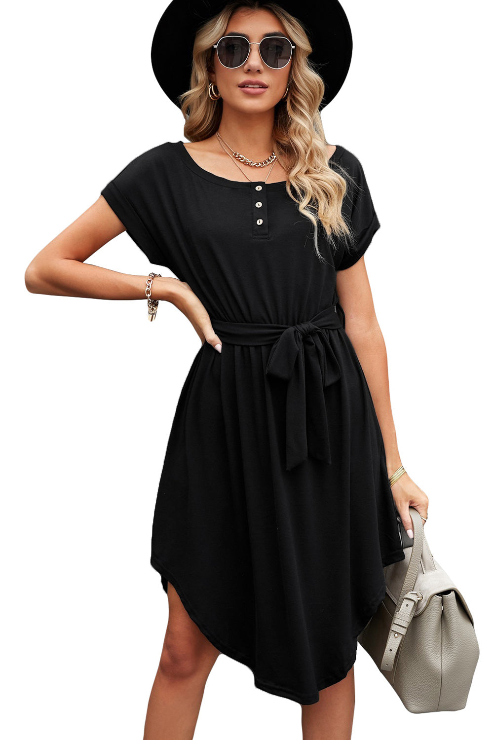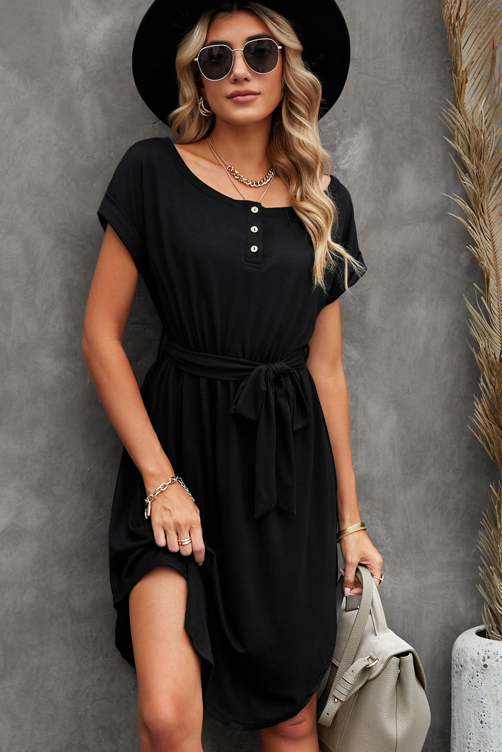 Buttons Crewneck Lace-up High Waist Mini Dress