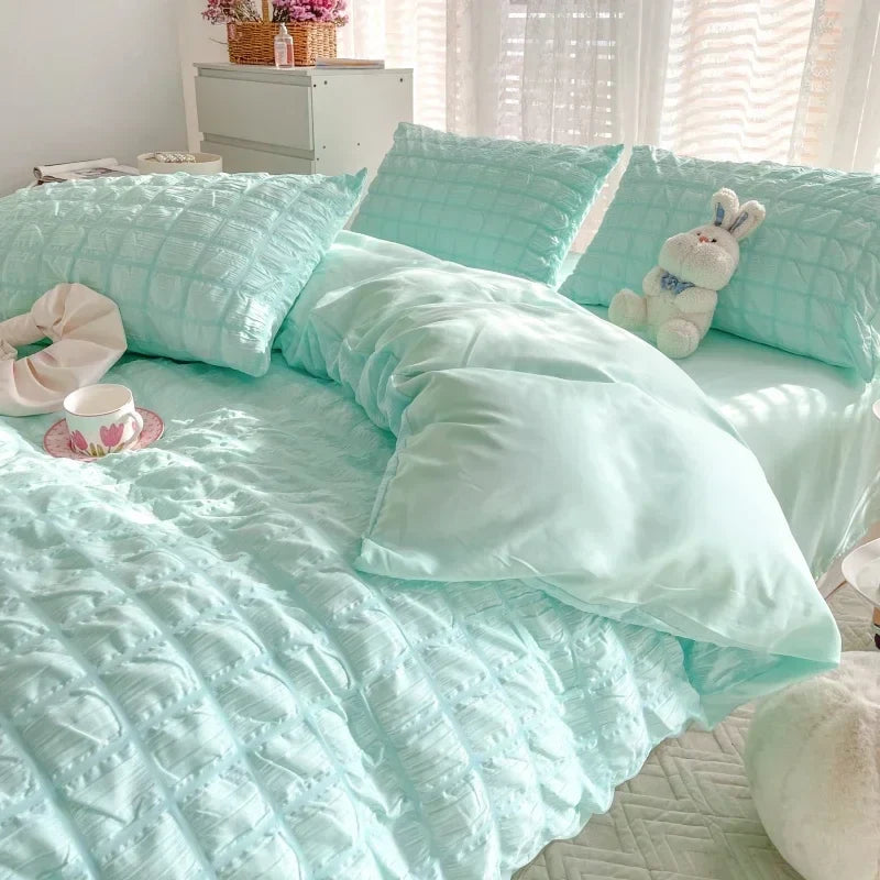 Check Bubble Fabric Bed Set Pucker Duvet Cover Pillowcase Bedding Set Bed Sheet Quilt Cover Single Queen King Size 4 Pieces Sets