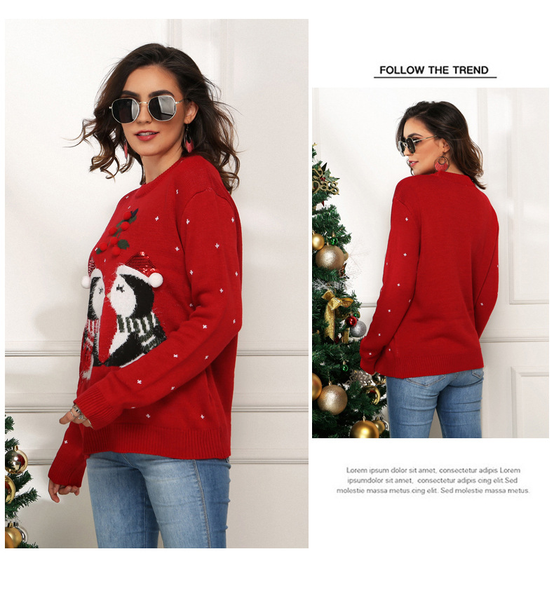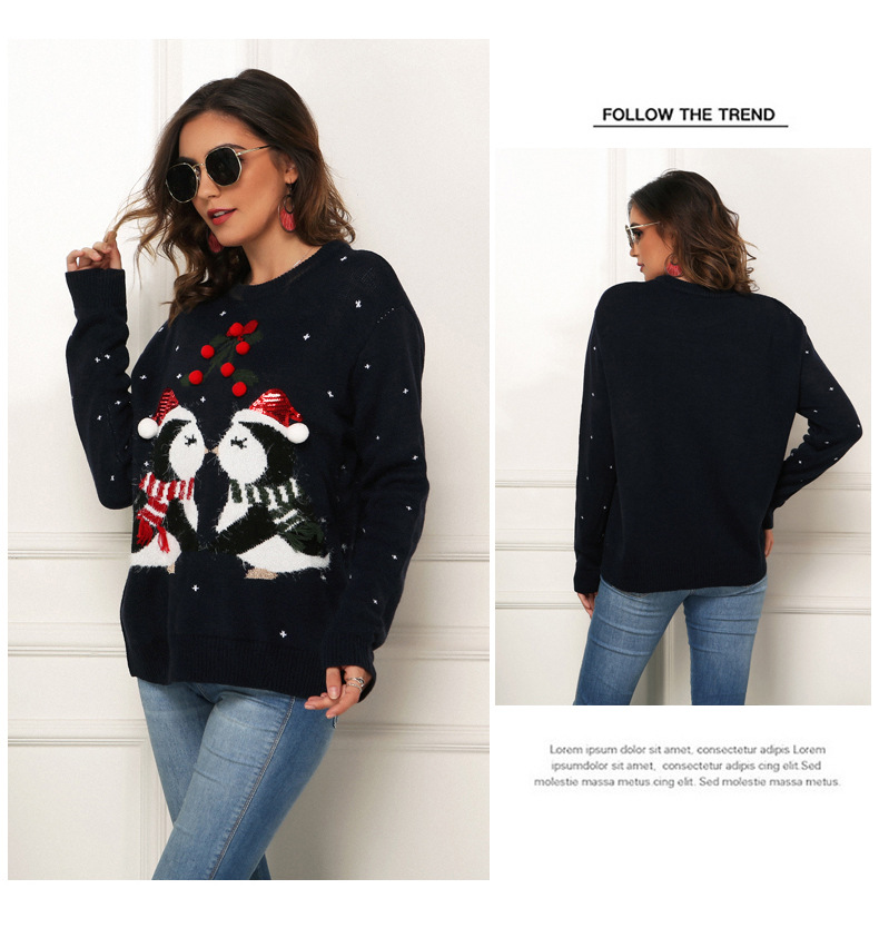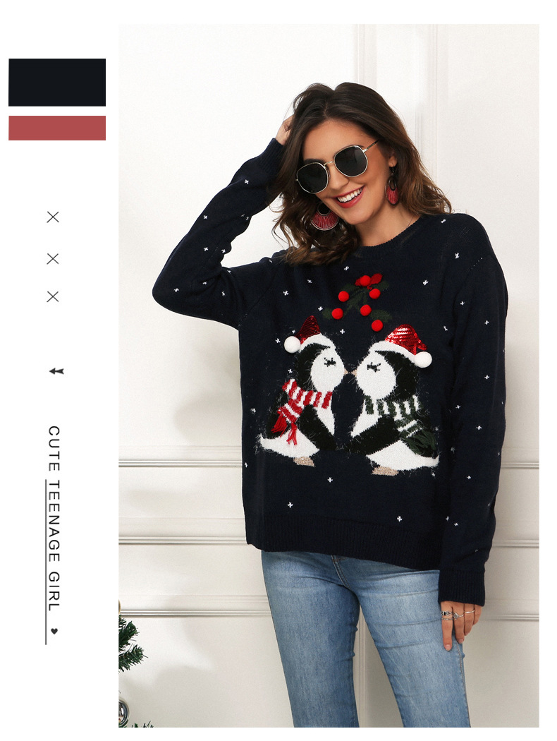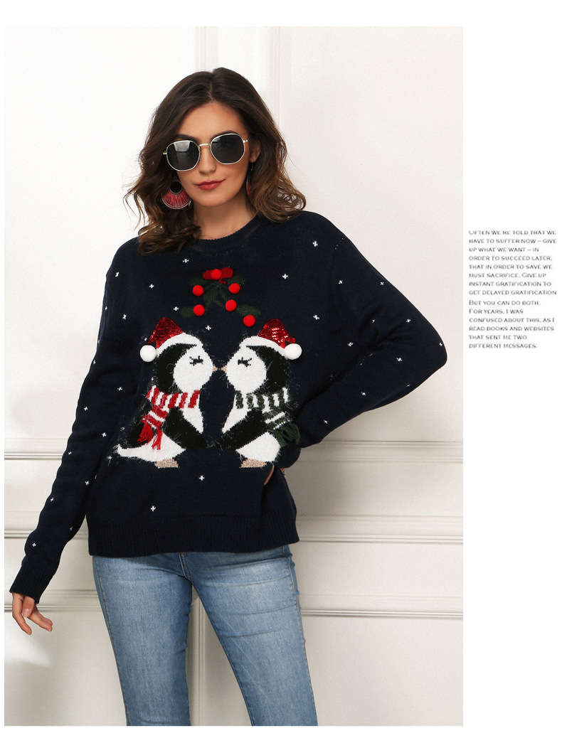 Decrease quantity for Christmas Clothes Women Penguin Jacquard Loose-fitting Long-sleeved Sweater Pullover Christmas Sweater