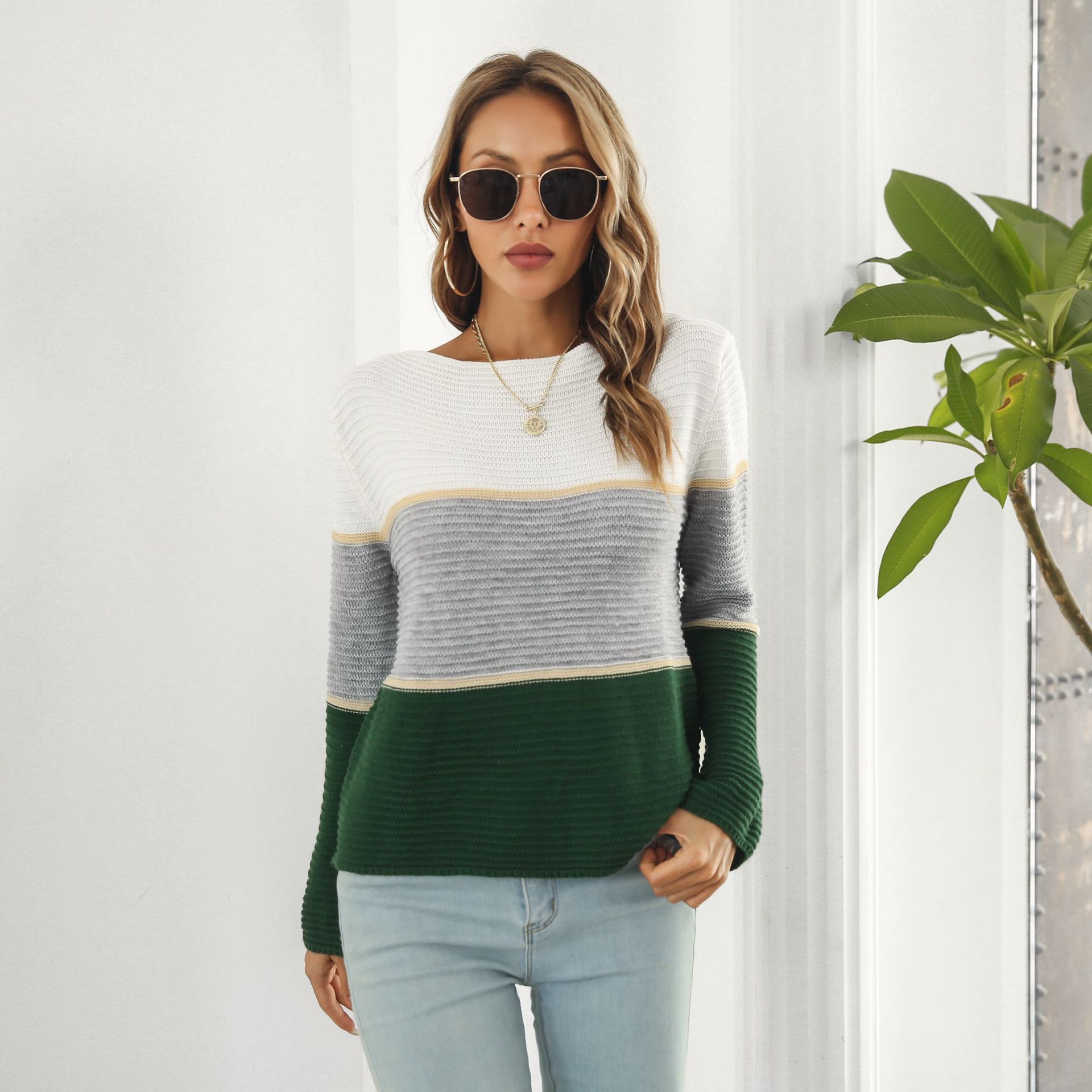 Decrease quantity for Contrast Color Gradient Color Striped off Neck Sweater Women Color Matching Knitwear Sweater