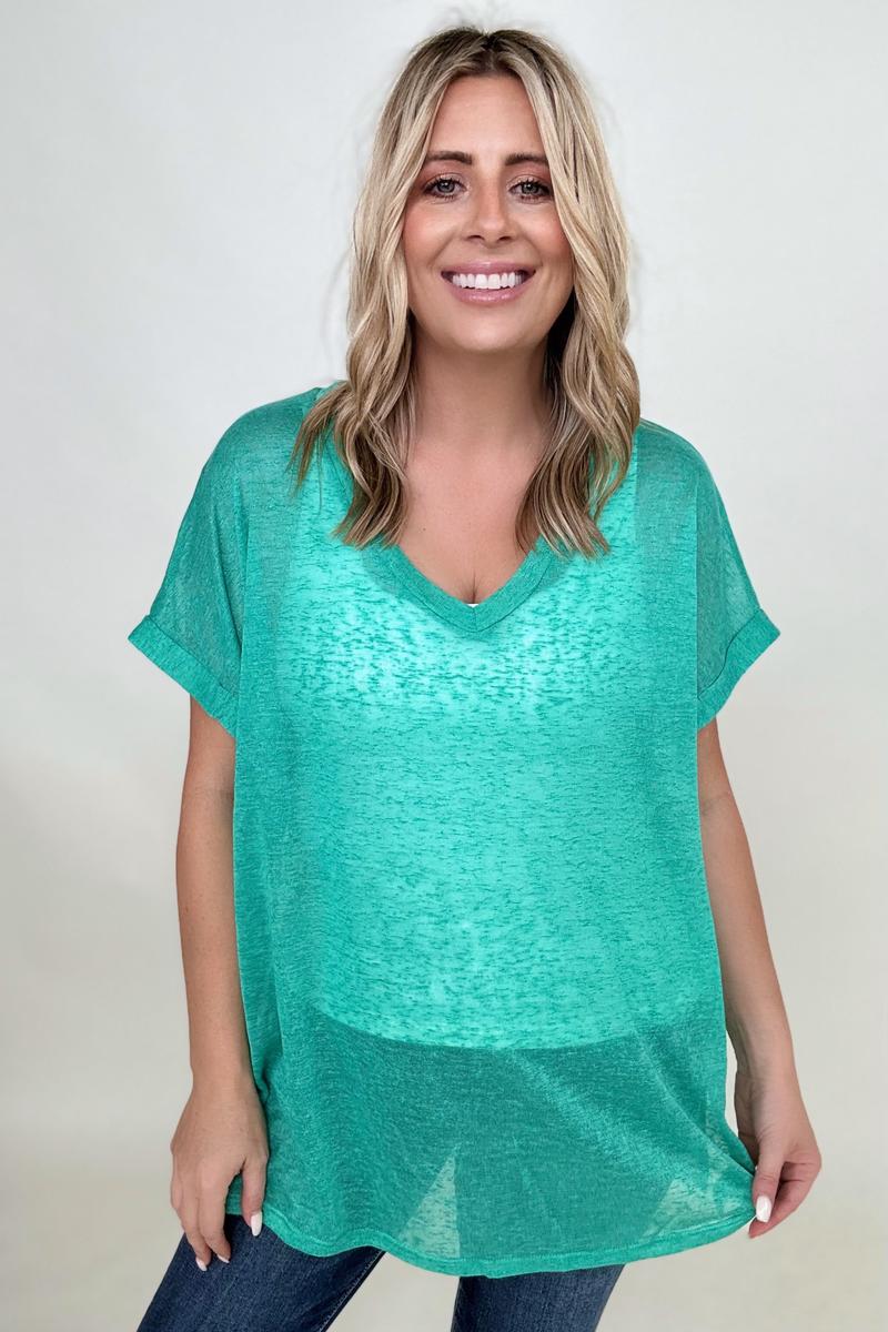 Cotton Bleu Women's V Neck Short Sleeve Knit Top