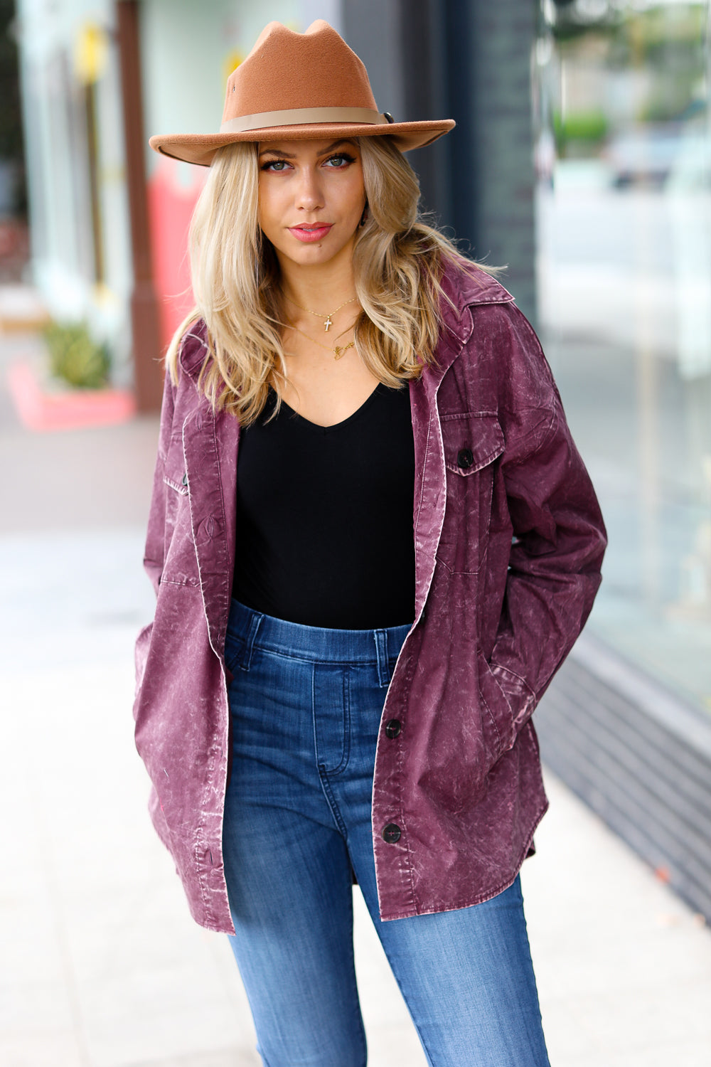 Update your basics with this cotton washed vintage oversized shacket with side pockets. front chest flaps and front button closure. Designed with a hi-lo hem and long button-cuff sleeves. step into fall with style!