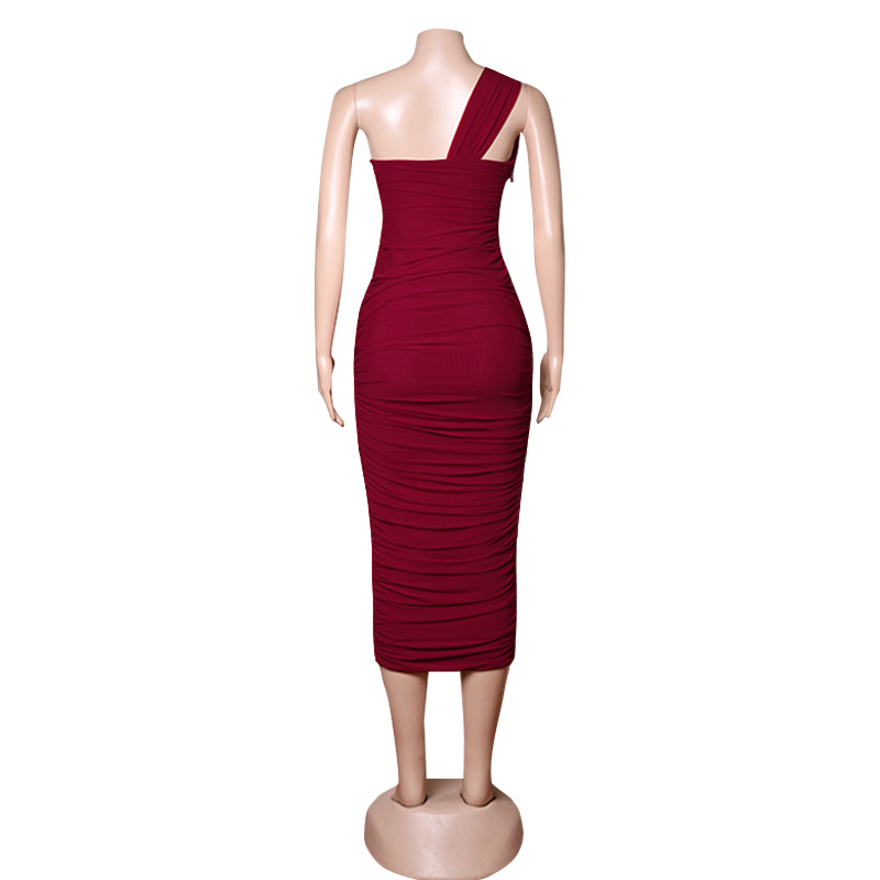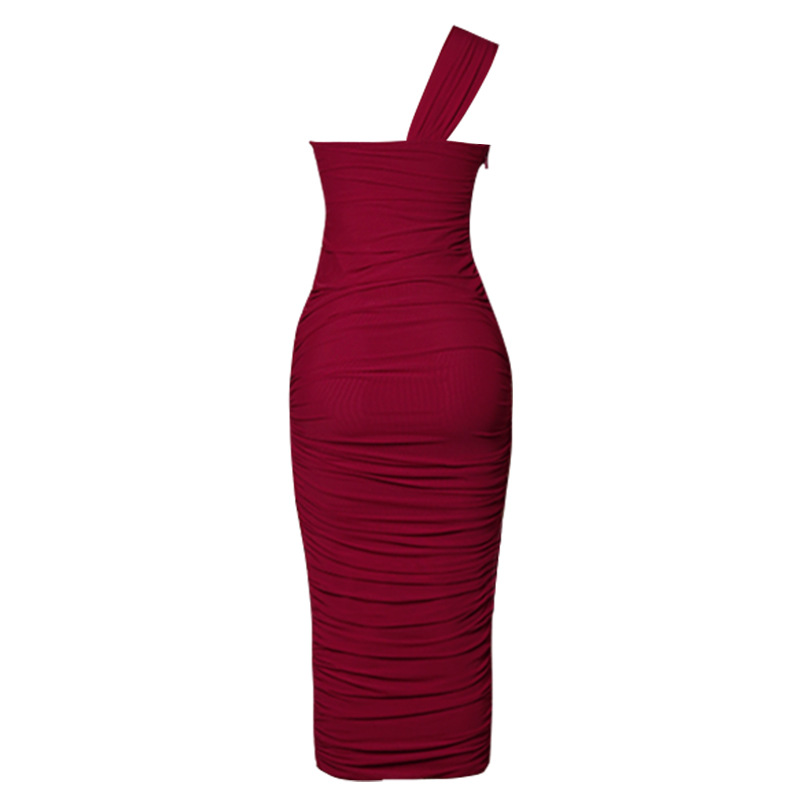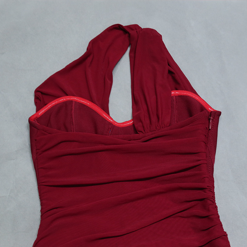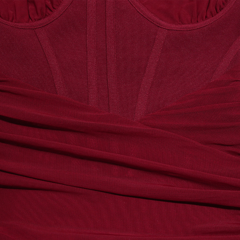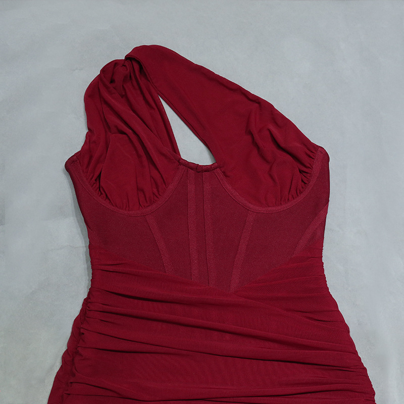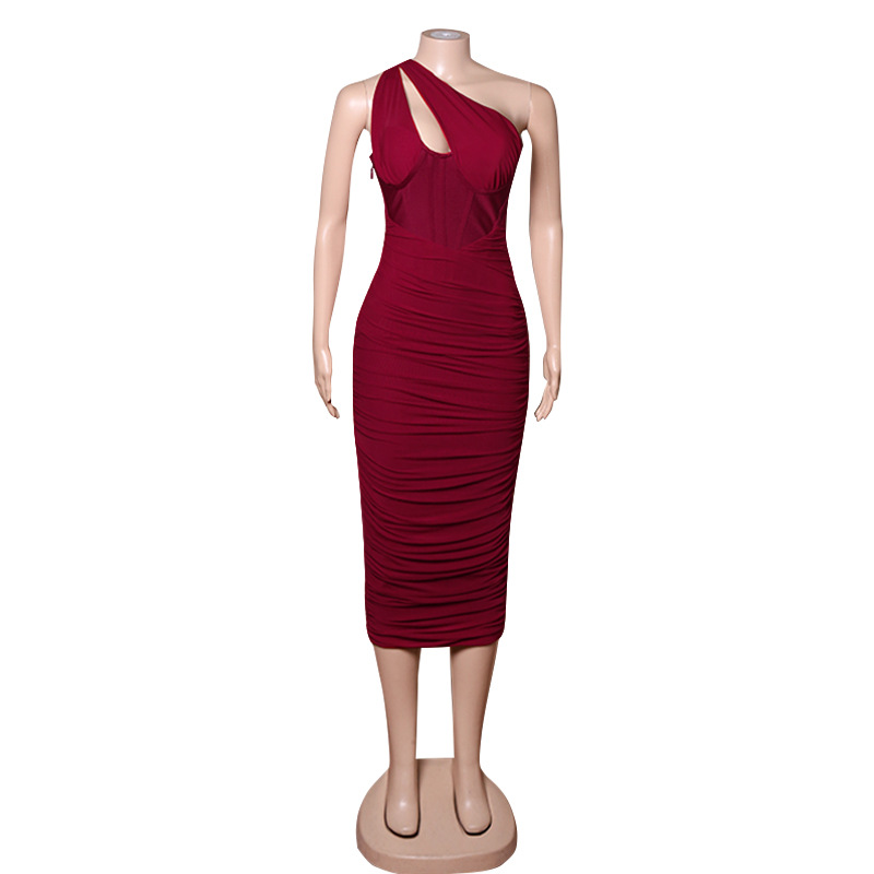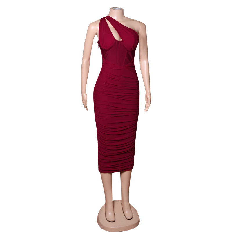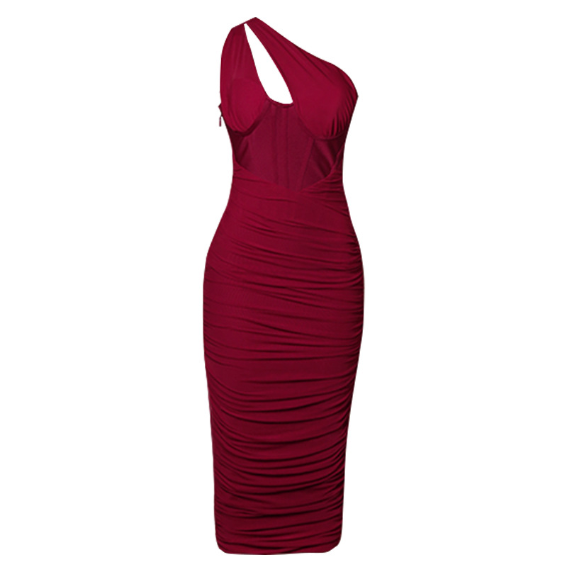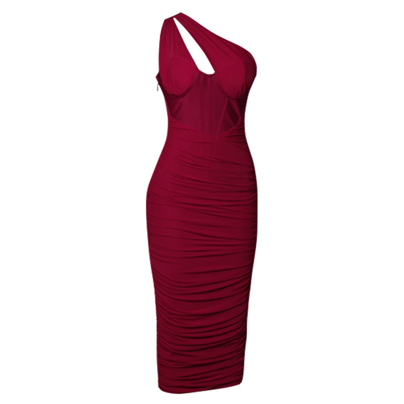 Elegant Oblique Shoulder Dress Mesh Hollow Out Cutout Boning Corset Backless Maxi Dress Pleated Dress Bandage Dress