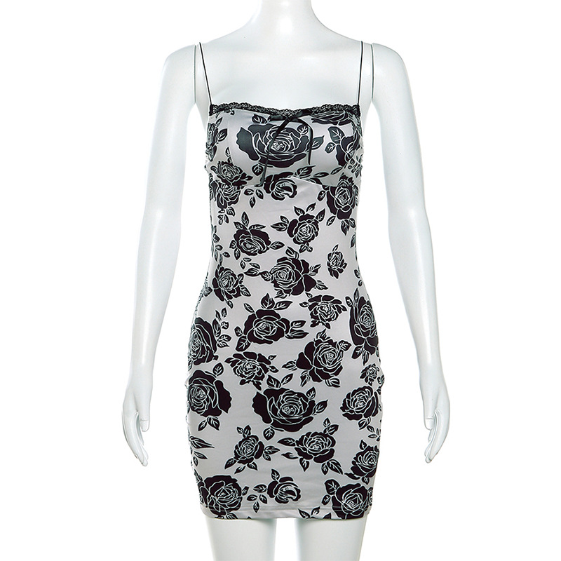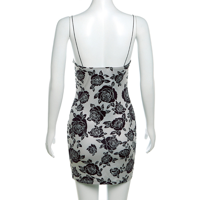 Fall Women Clothing Backless Strap Slim Fit Vintage Printed Sheath Dress