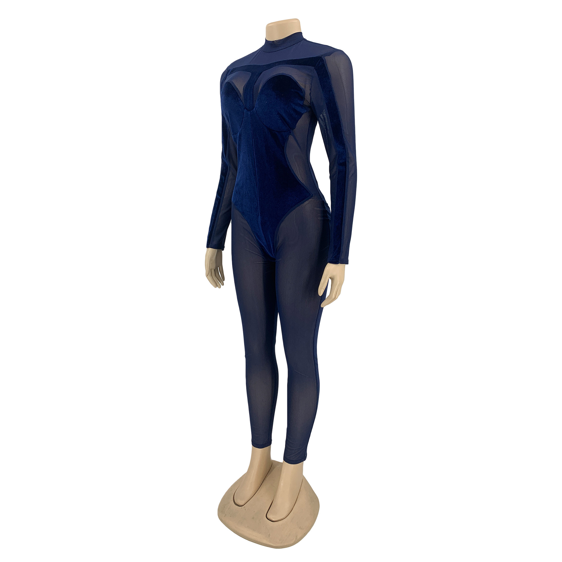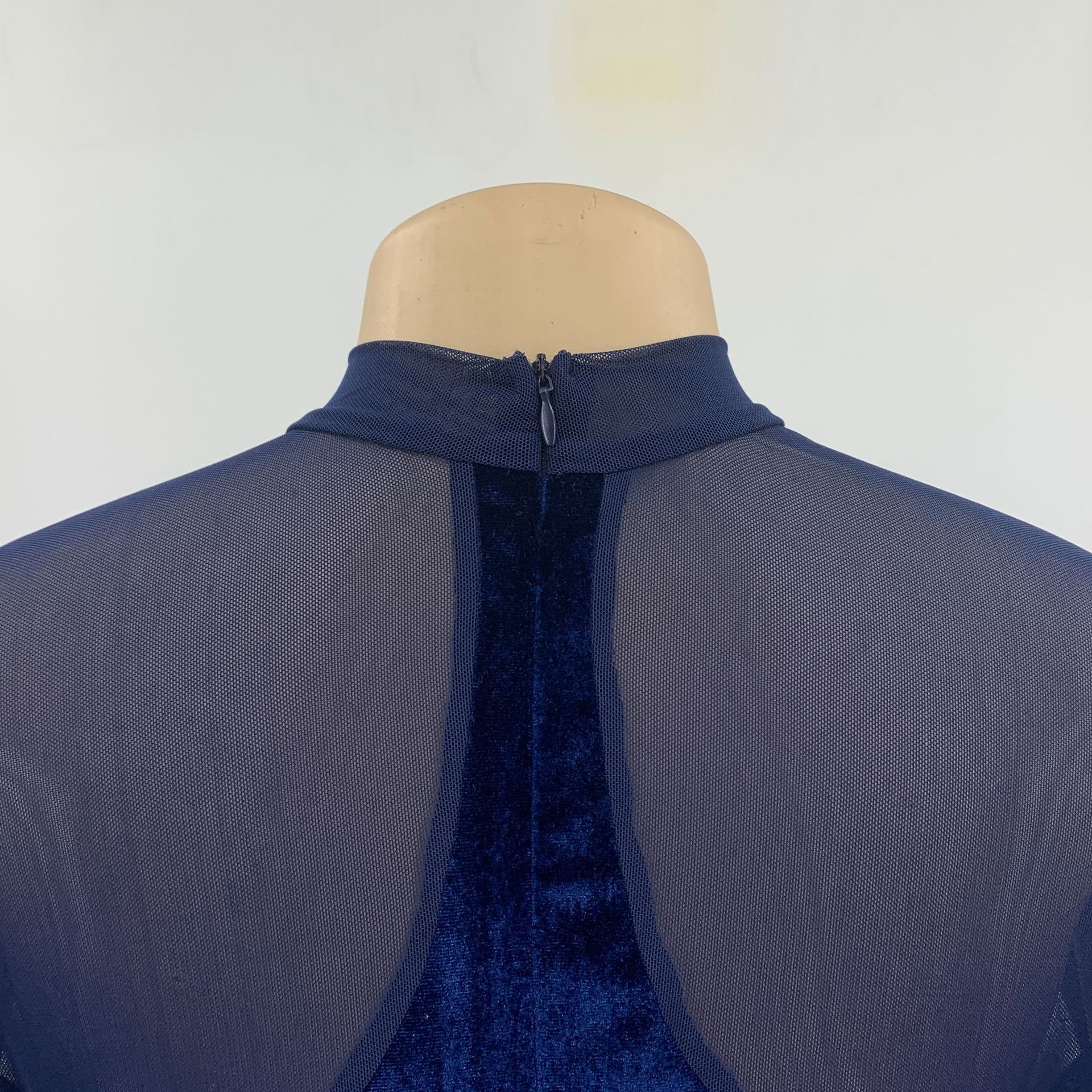 Decrease quantity for Fall Women Clothing Sexy See Through Mesh Patchwork Back Long Sleeve Zipper Jumpsuit Women