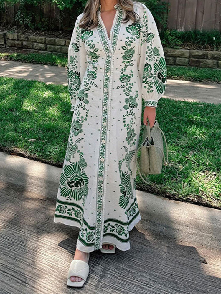 Indulge in the ethereal beauty of this Forest Soul off-white maxi dress. Featuring a V-neckline and long sleeves. this sustainable dress is adorned with center front buttons and plastic buttons for a soft and playful touch. Perfect for any occasion. let your inner forest soul shine in this dress.
