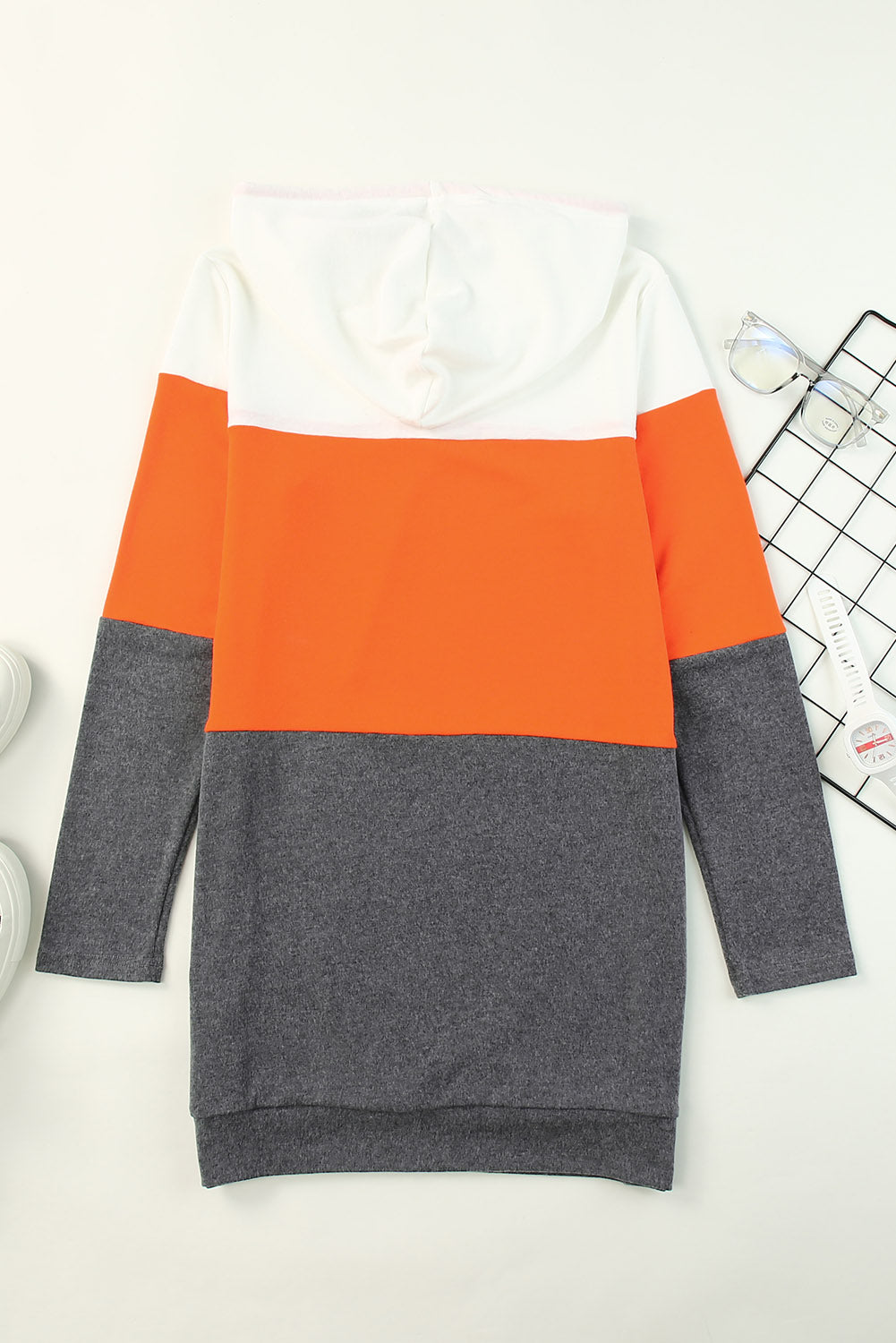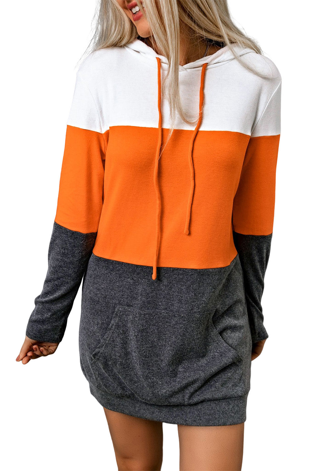 • Catch eyes in this hooded dress with color block design