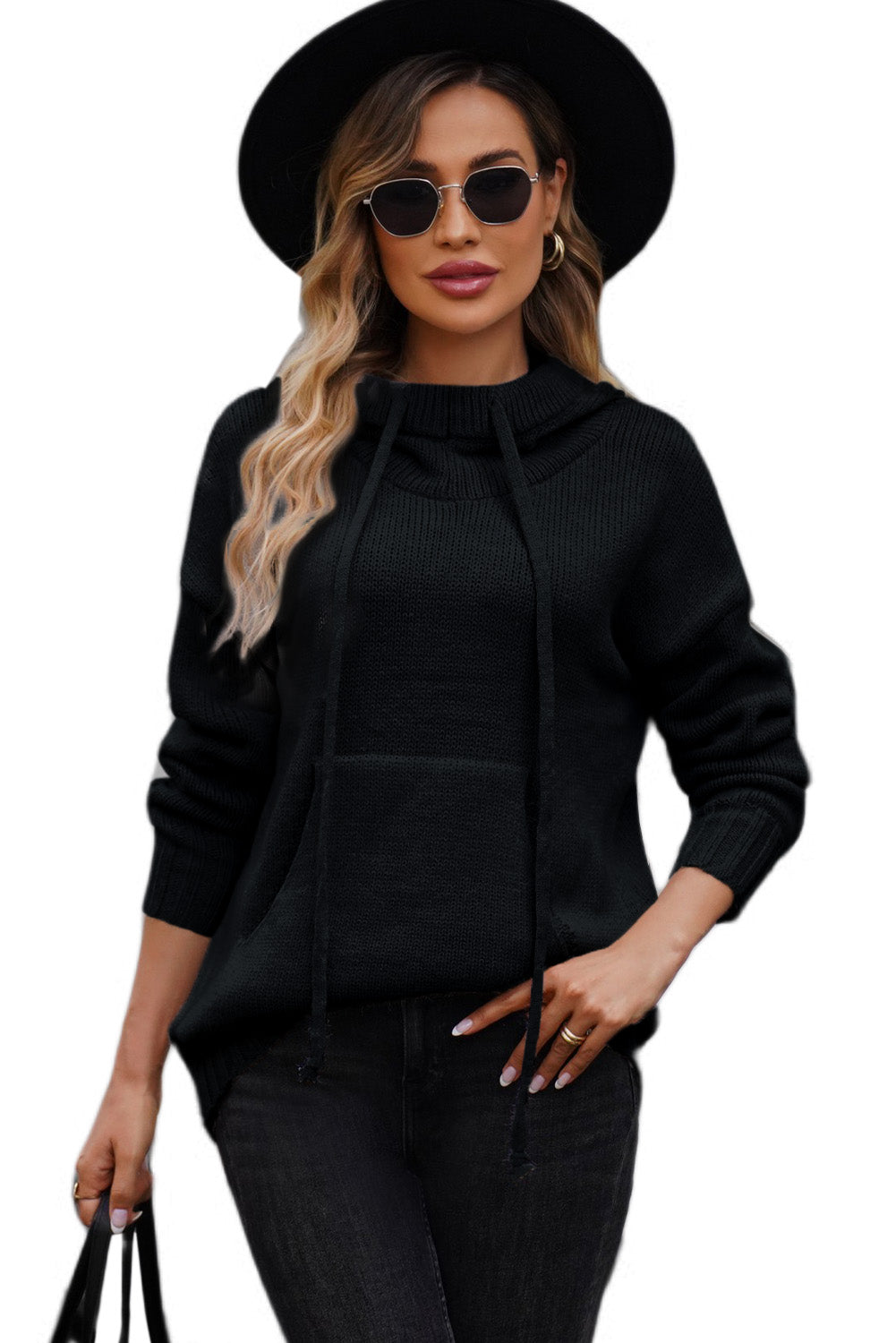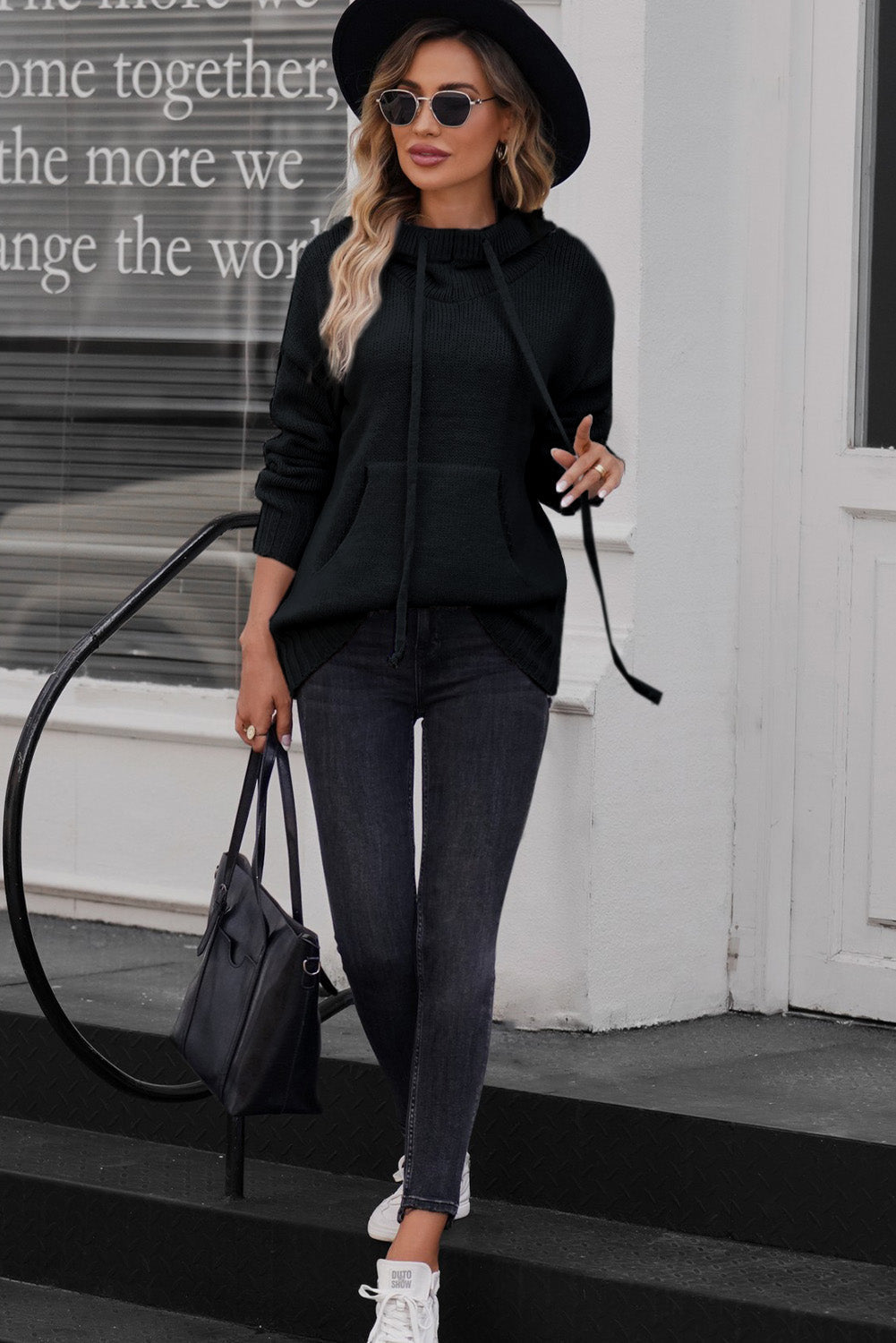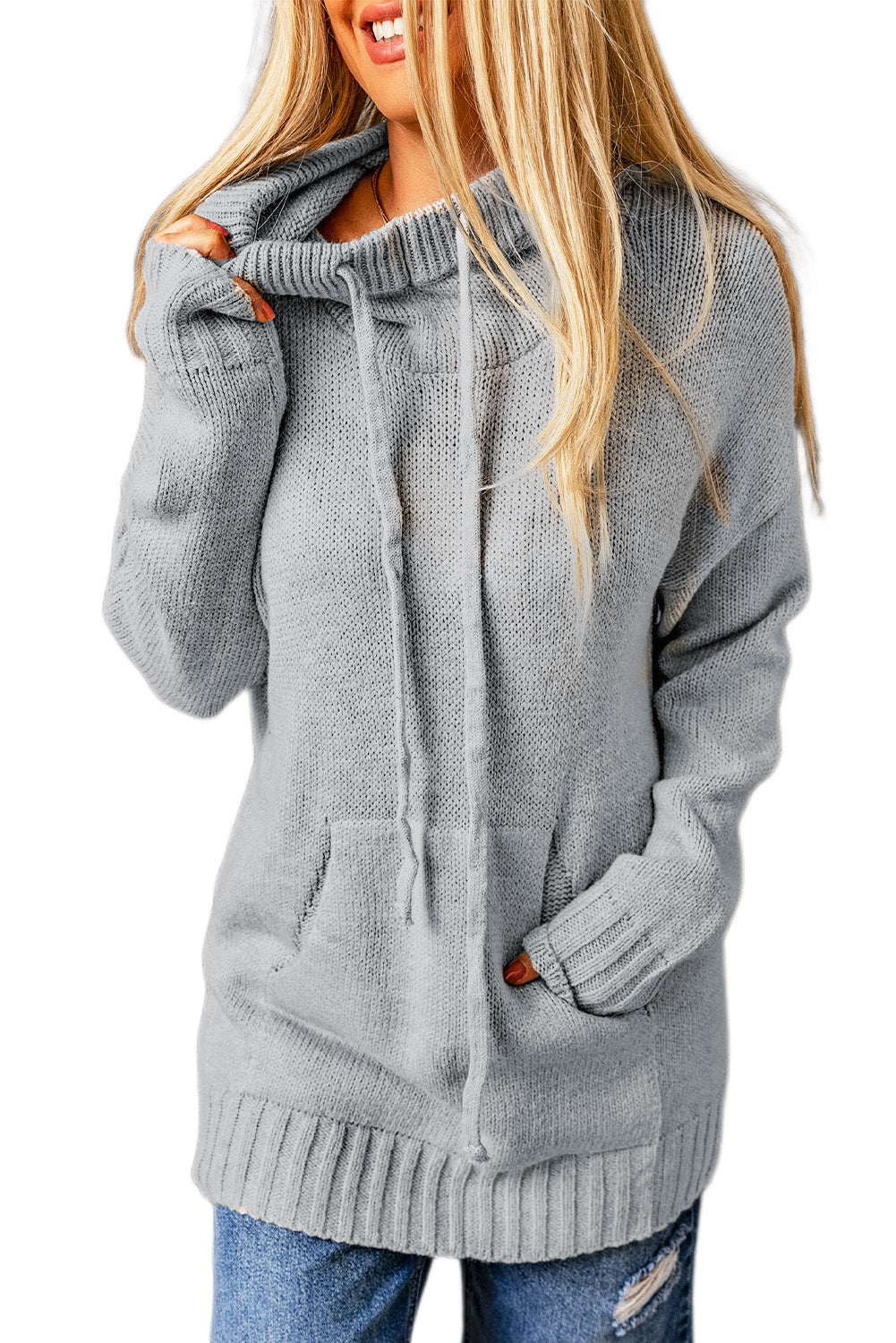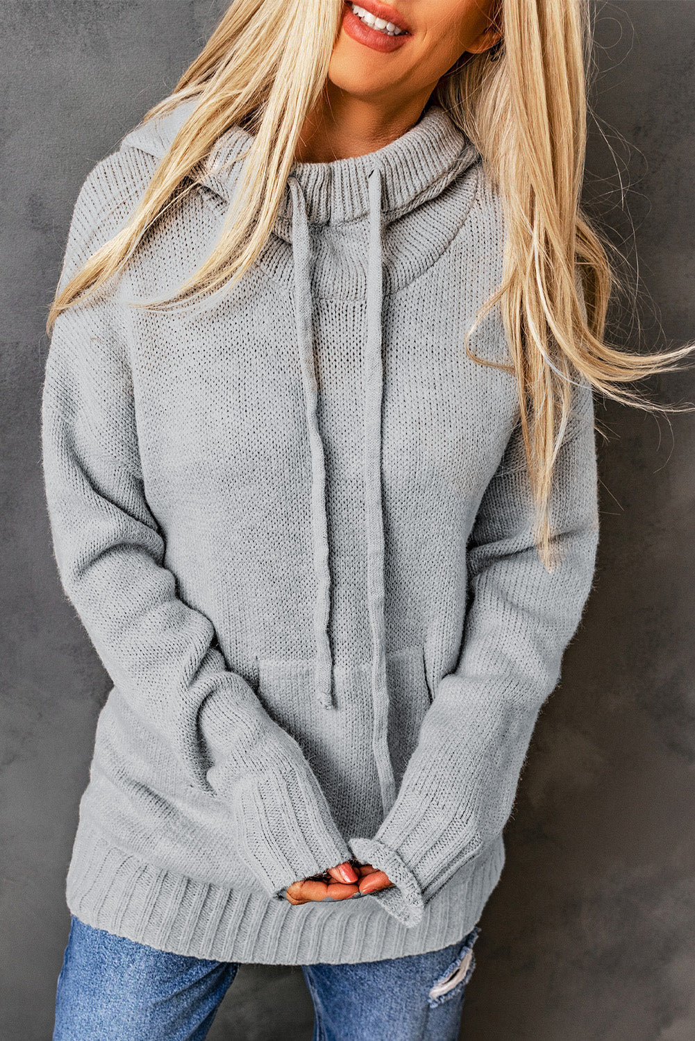 Gray Kangaroo Pocket Cowl Neck Knitted Sweater