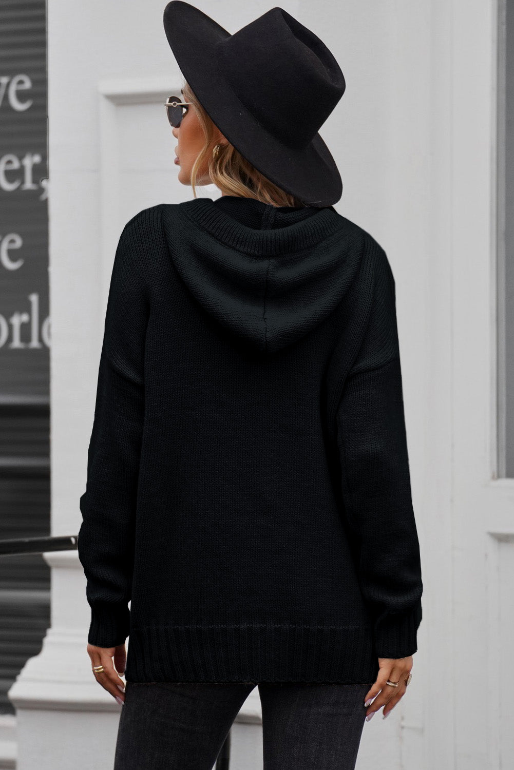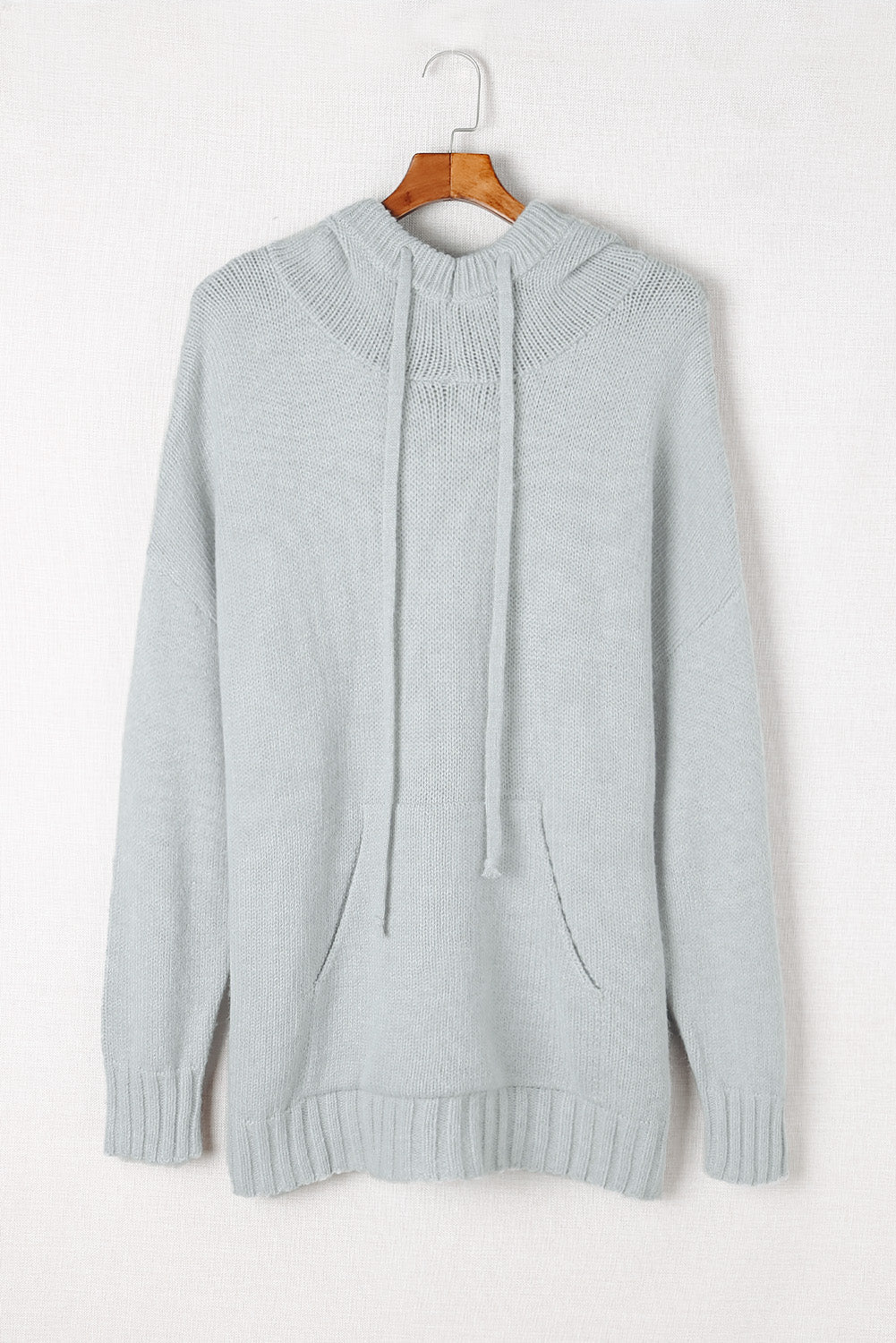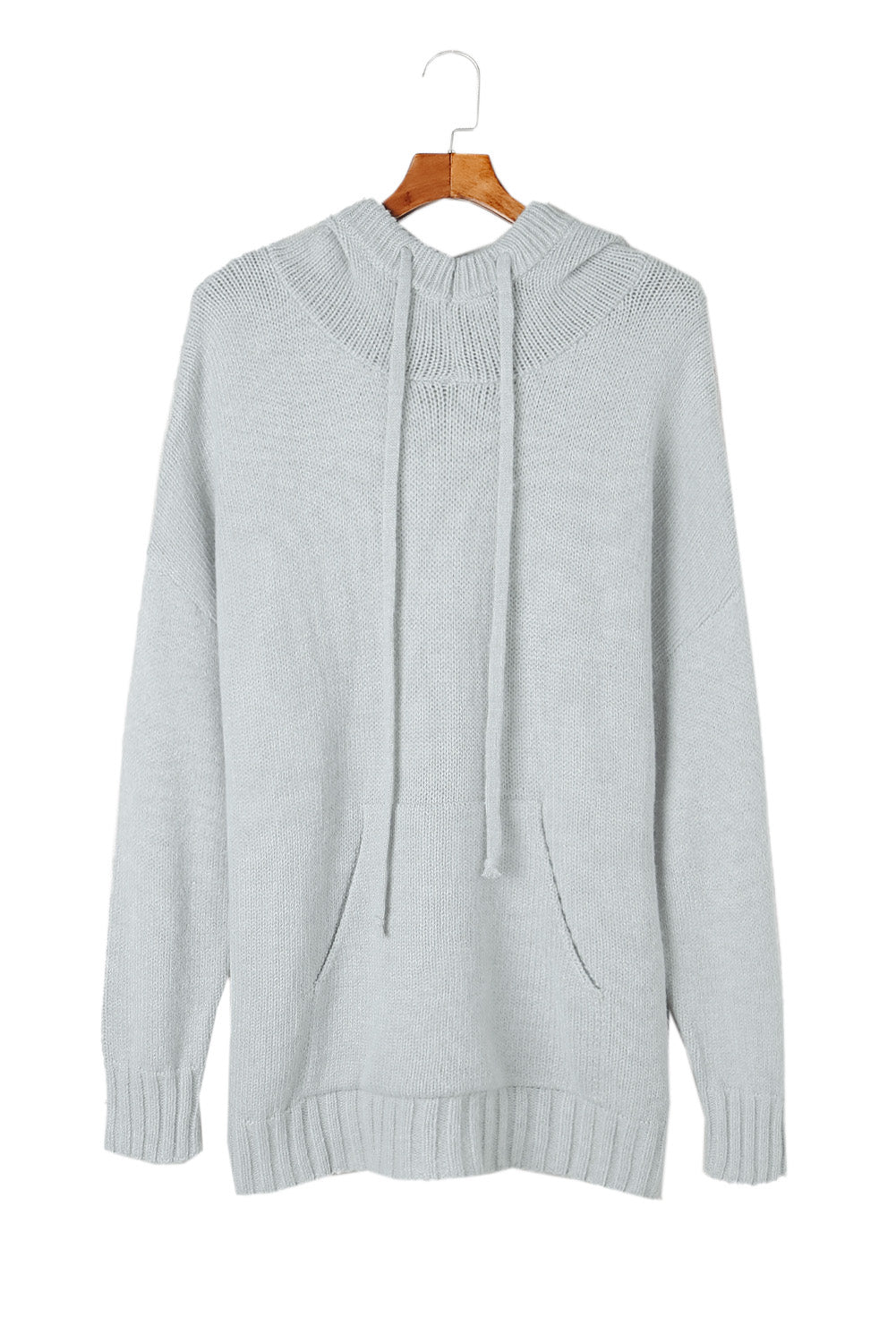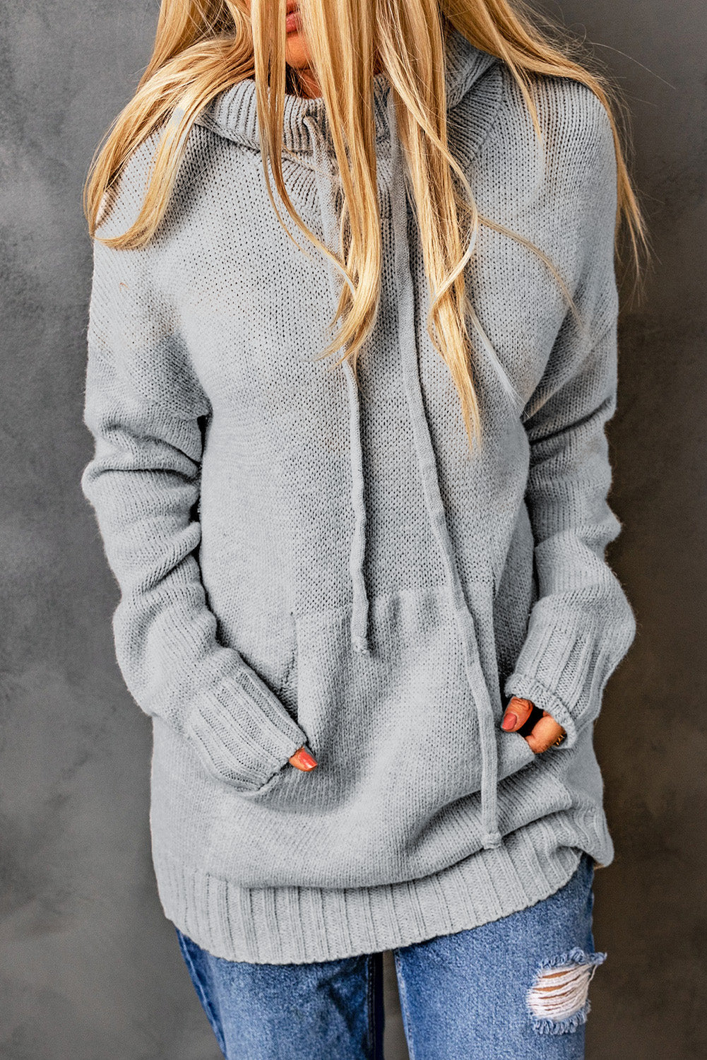 Gray Kangaroo Pocket Cowl Neck Knitted Sweater