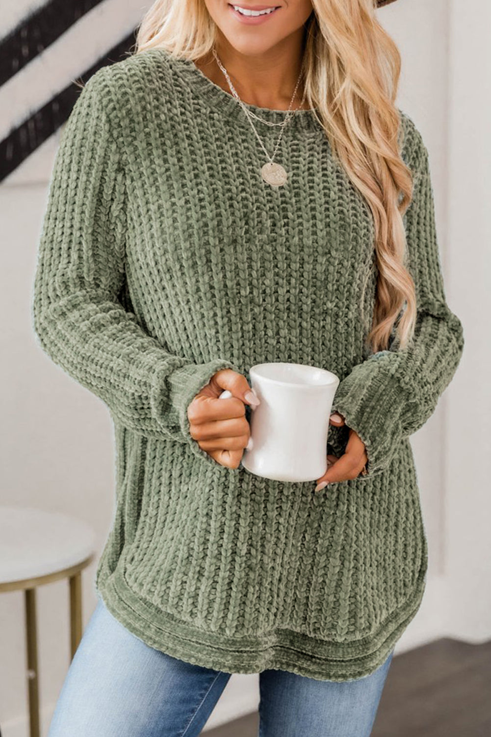 Green Long Sleeve Round Hem Cable Knit Sweater
