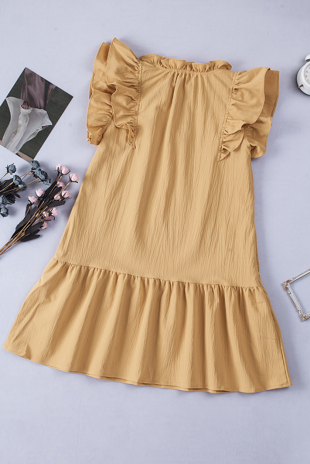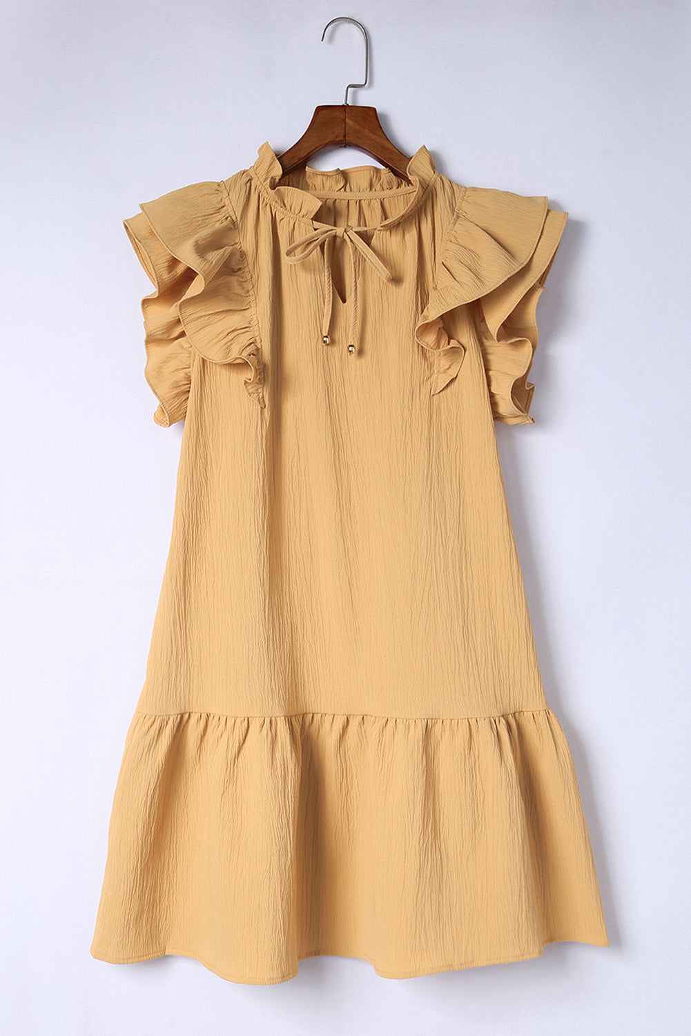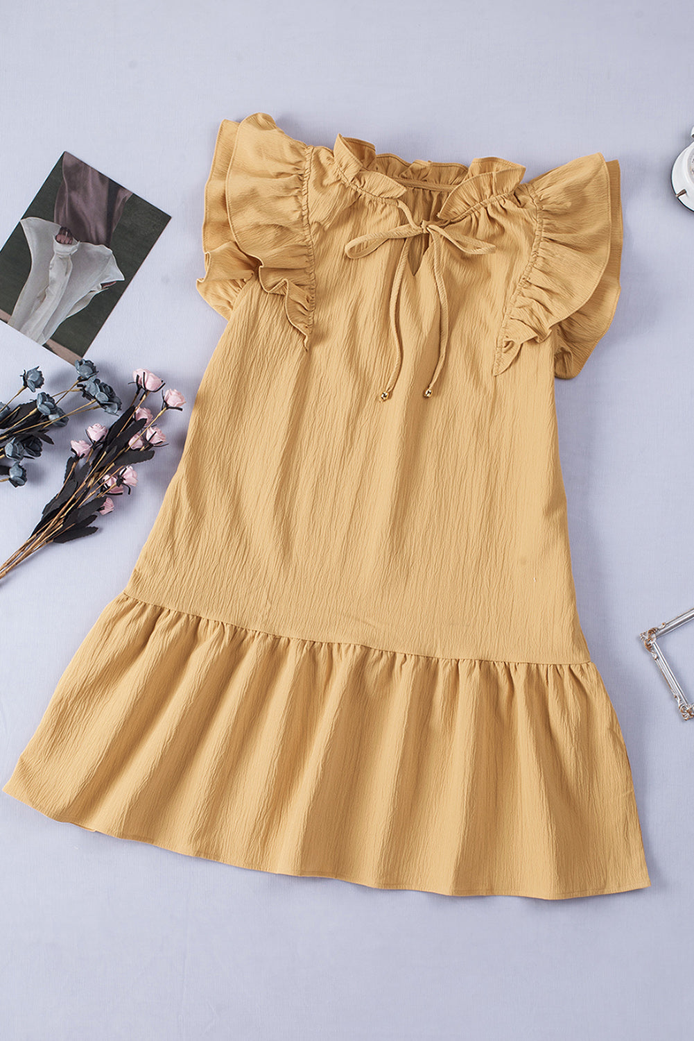 Green Tiered Ruffled Sleeves Mini Dress with Pockets