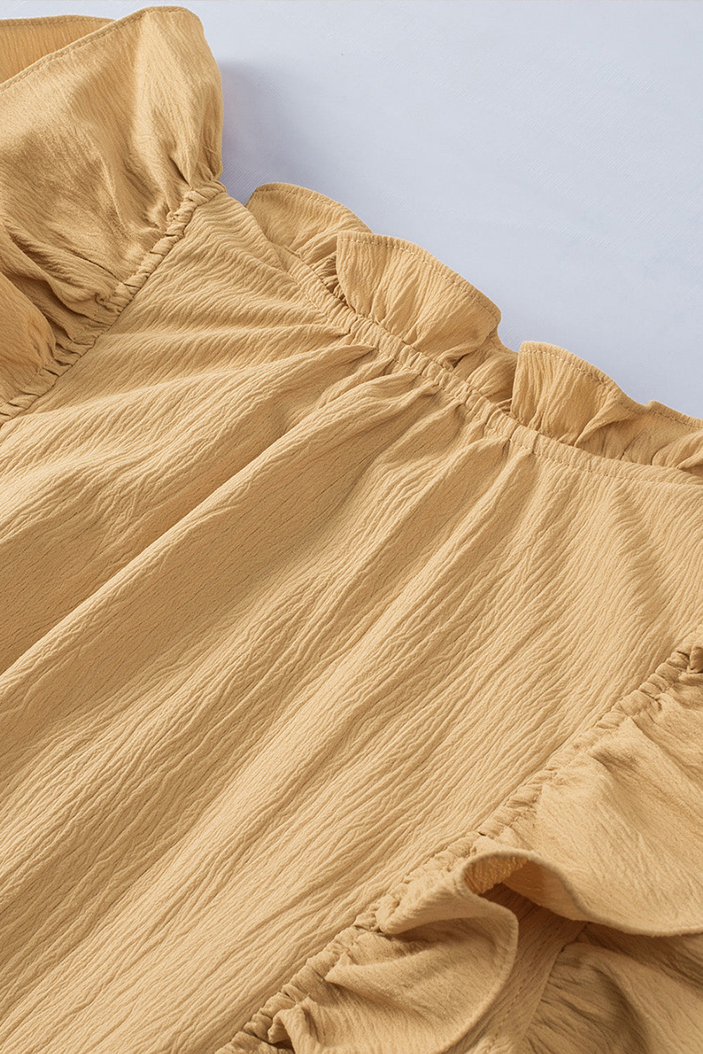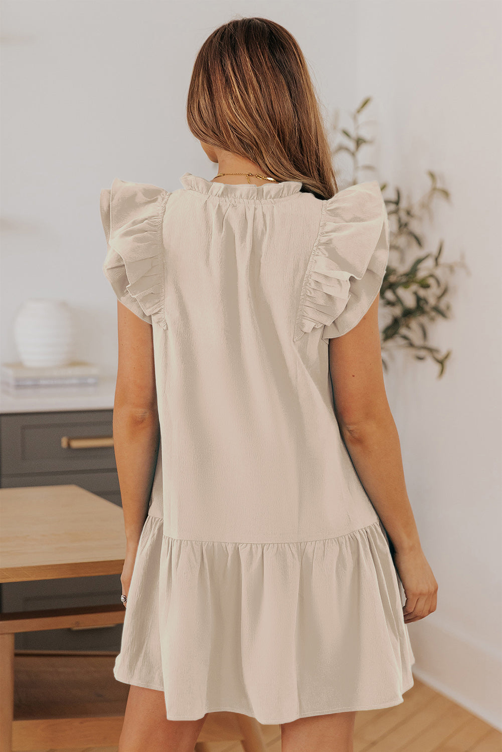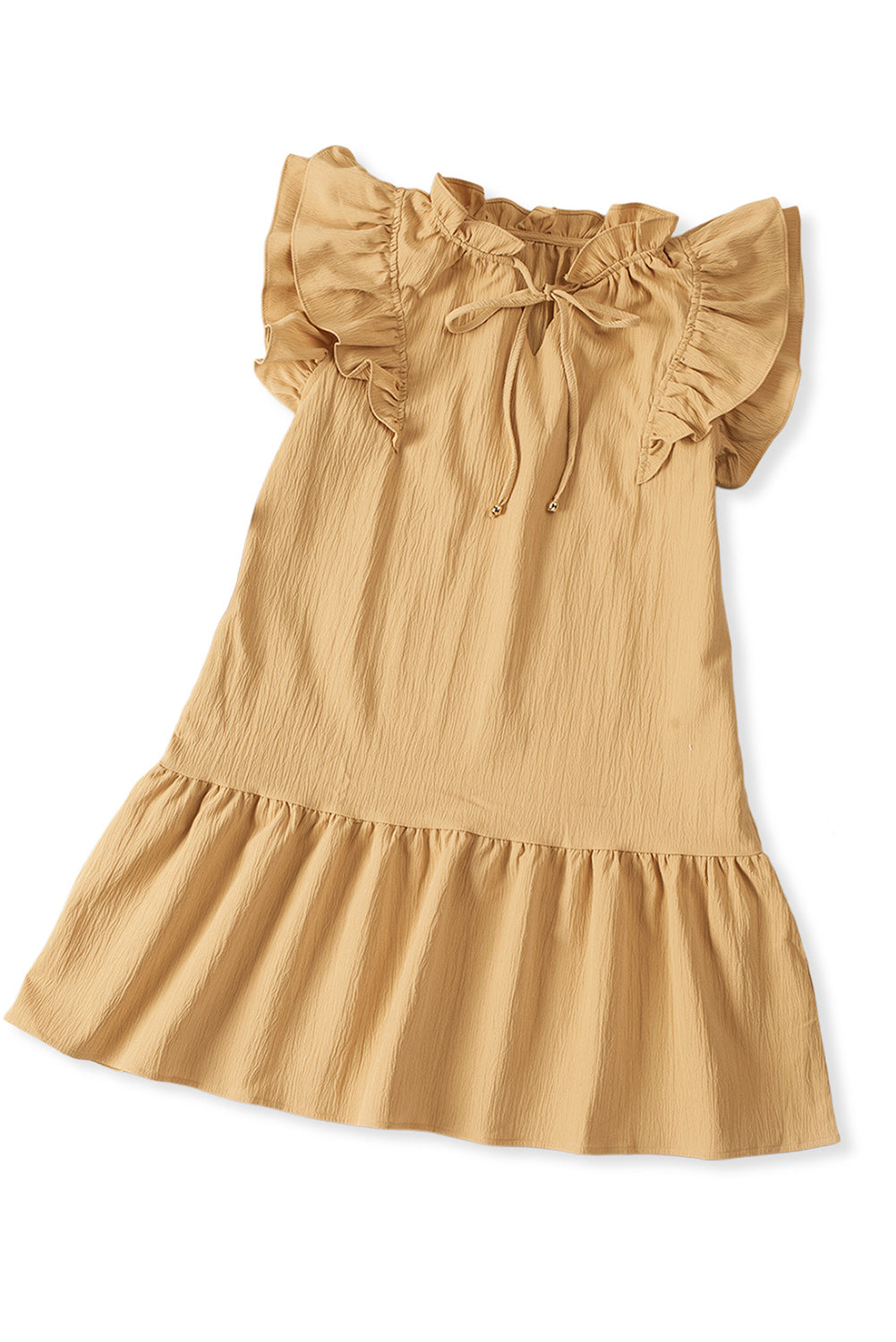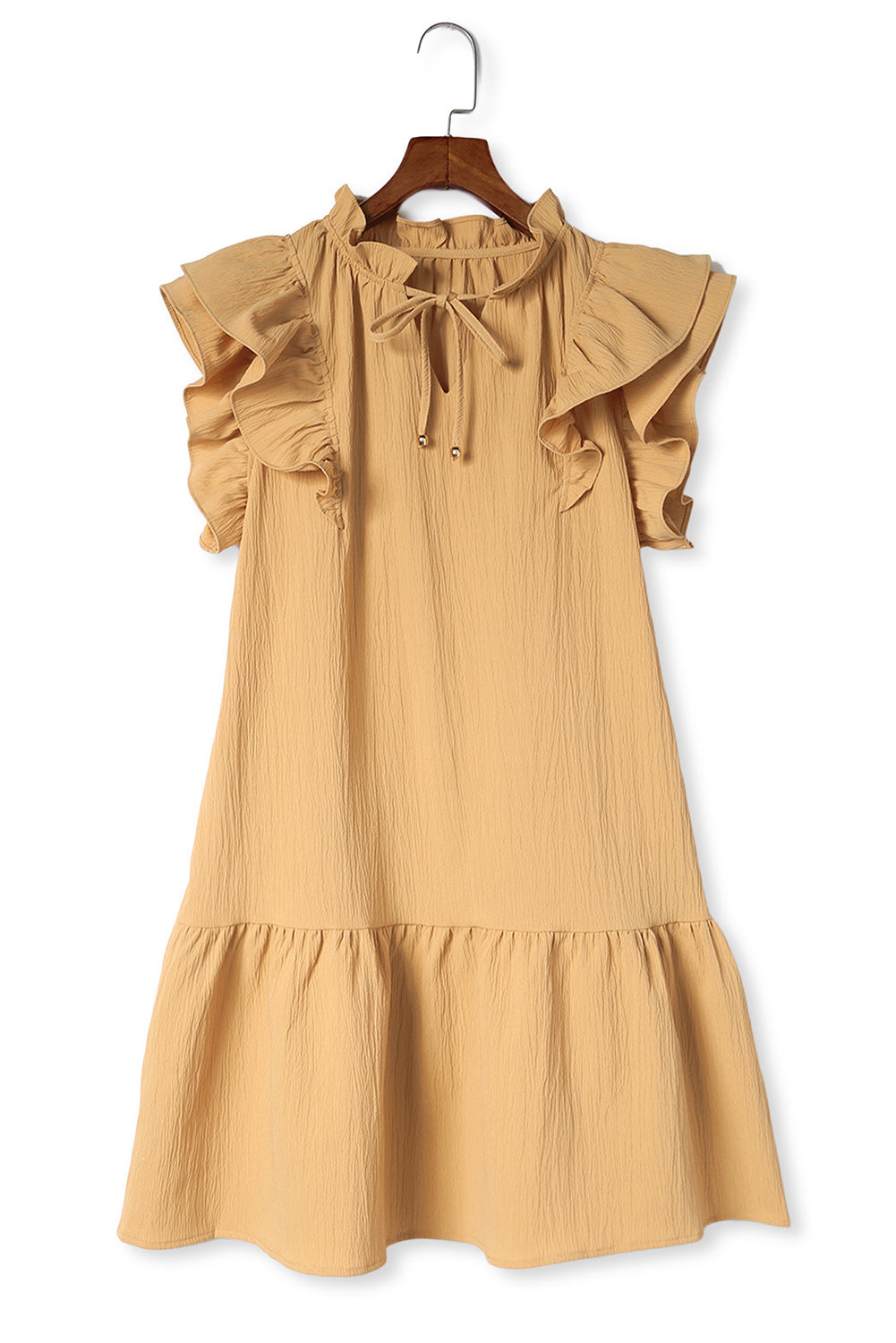Green Tiered Ruffled Sleeves Mini Dress with Pockets