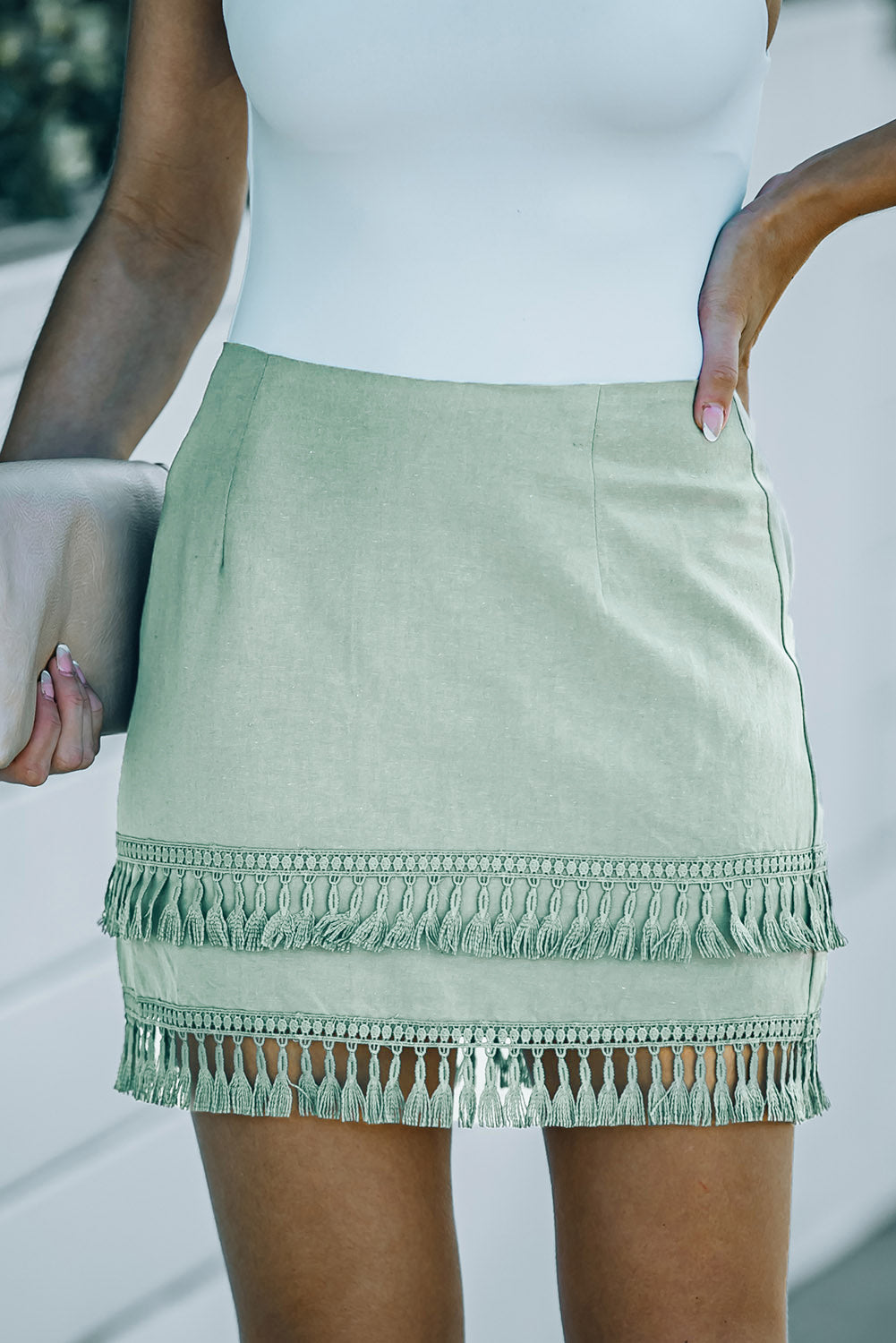 Green Tiered Tassel Zip-up High Waist Mini Skirt