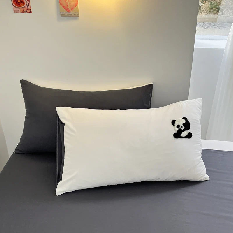 Ins Cartoon Panda Bedding Set Towel Embroidery Duvet Cover Queen Twin Full Size Grey Bed Flat Sheet Quilt Cover Pillowcases