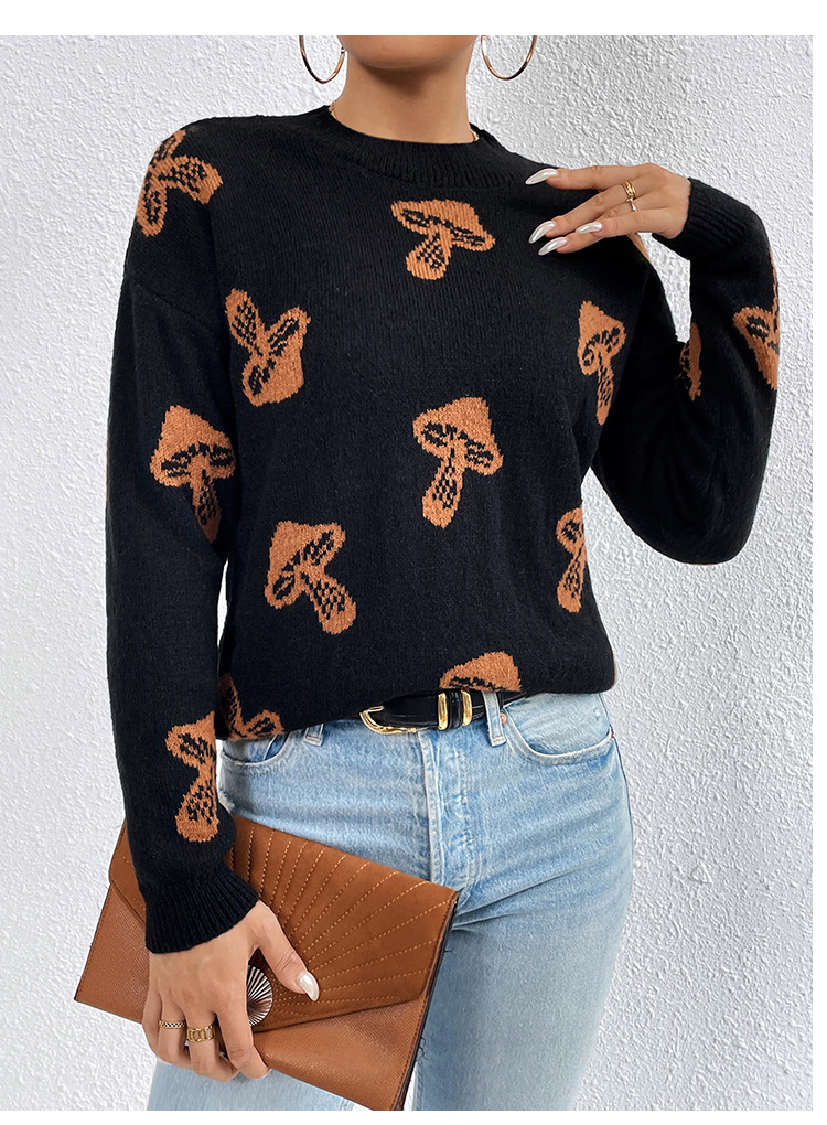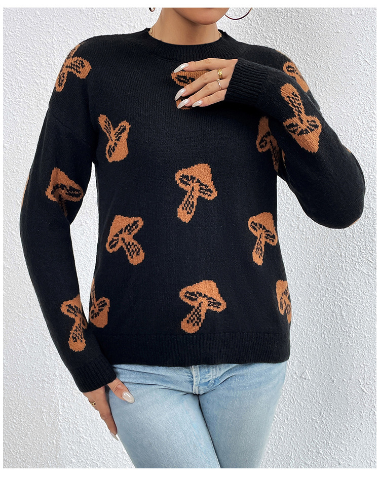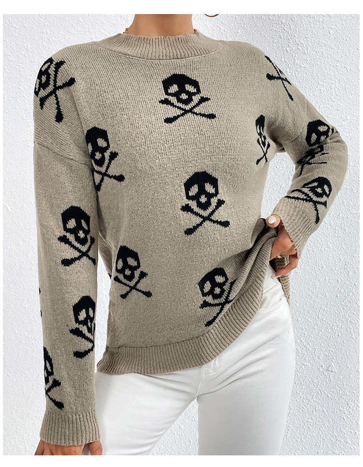 Increase quantity for Jacquard round Neck Pullover Knitted Sweater Women Autumn Winter Skull Halloween Sweater