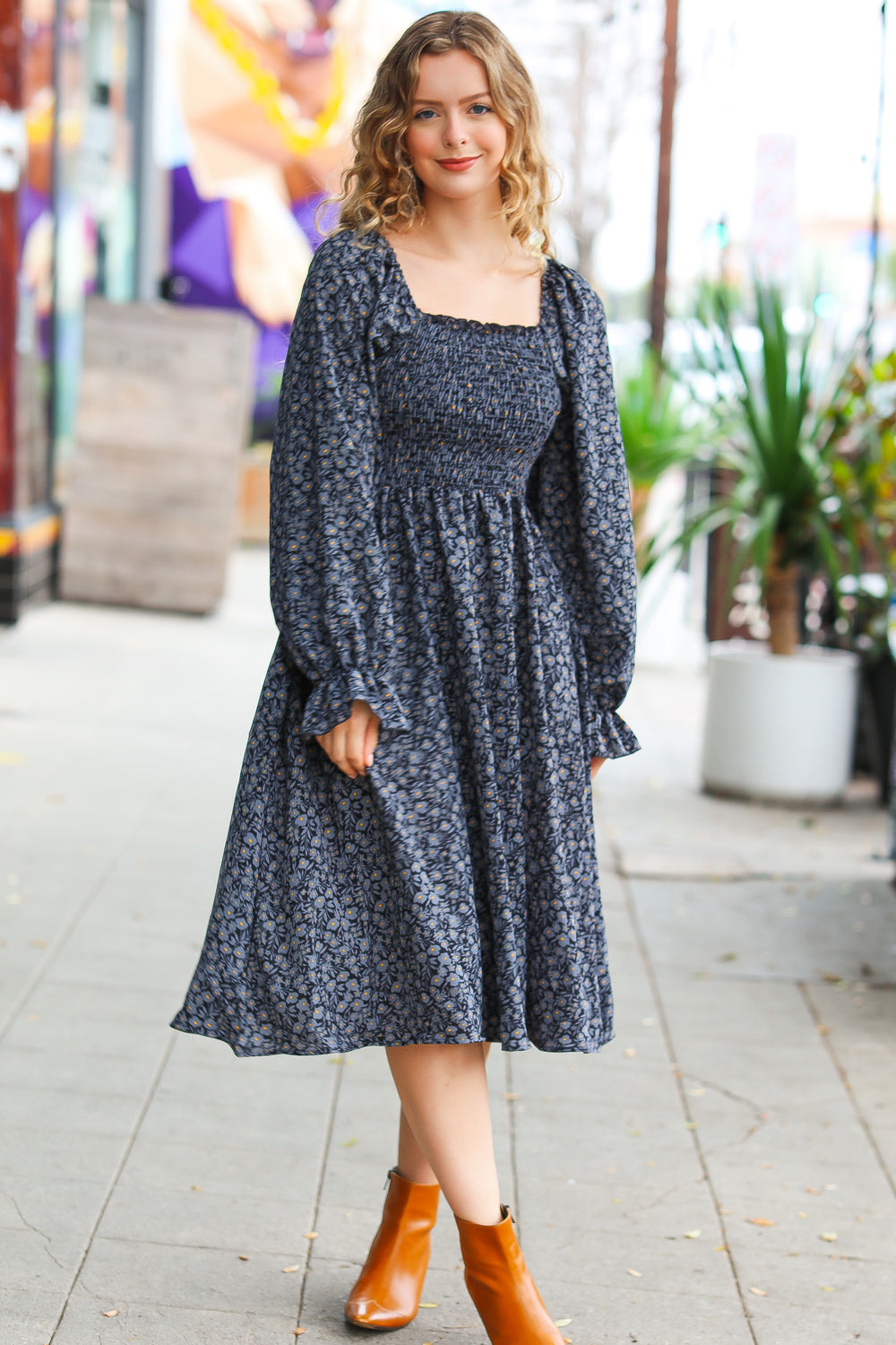 Smocking + Bubble Sleeve - Midi - Ditsy Floral