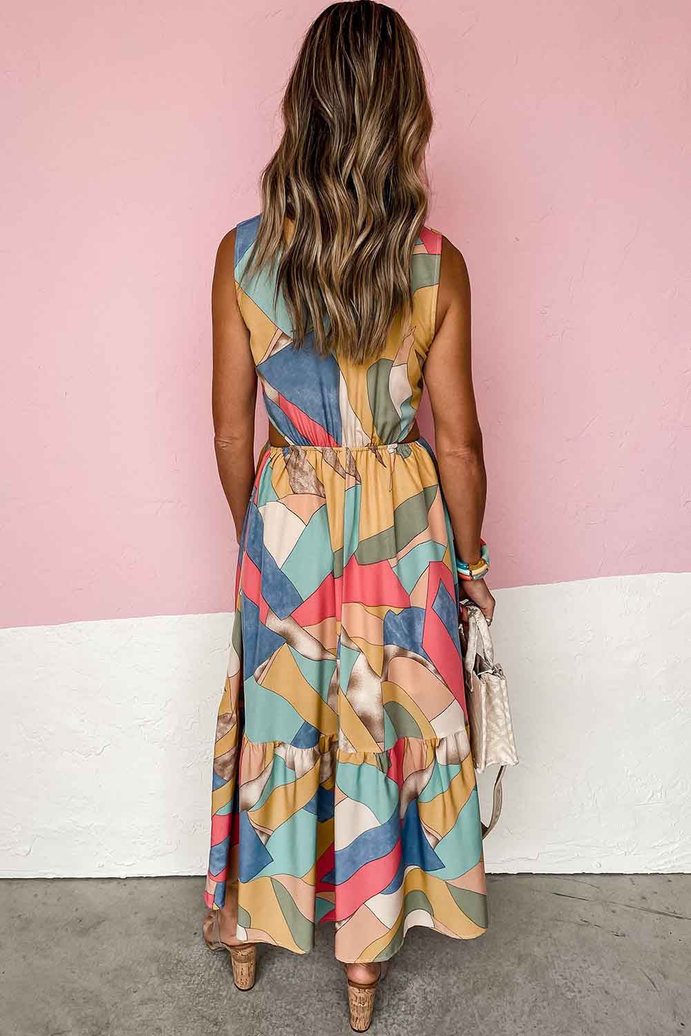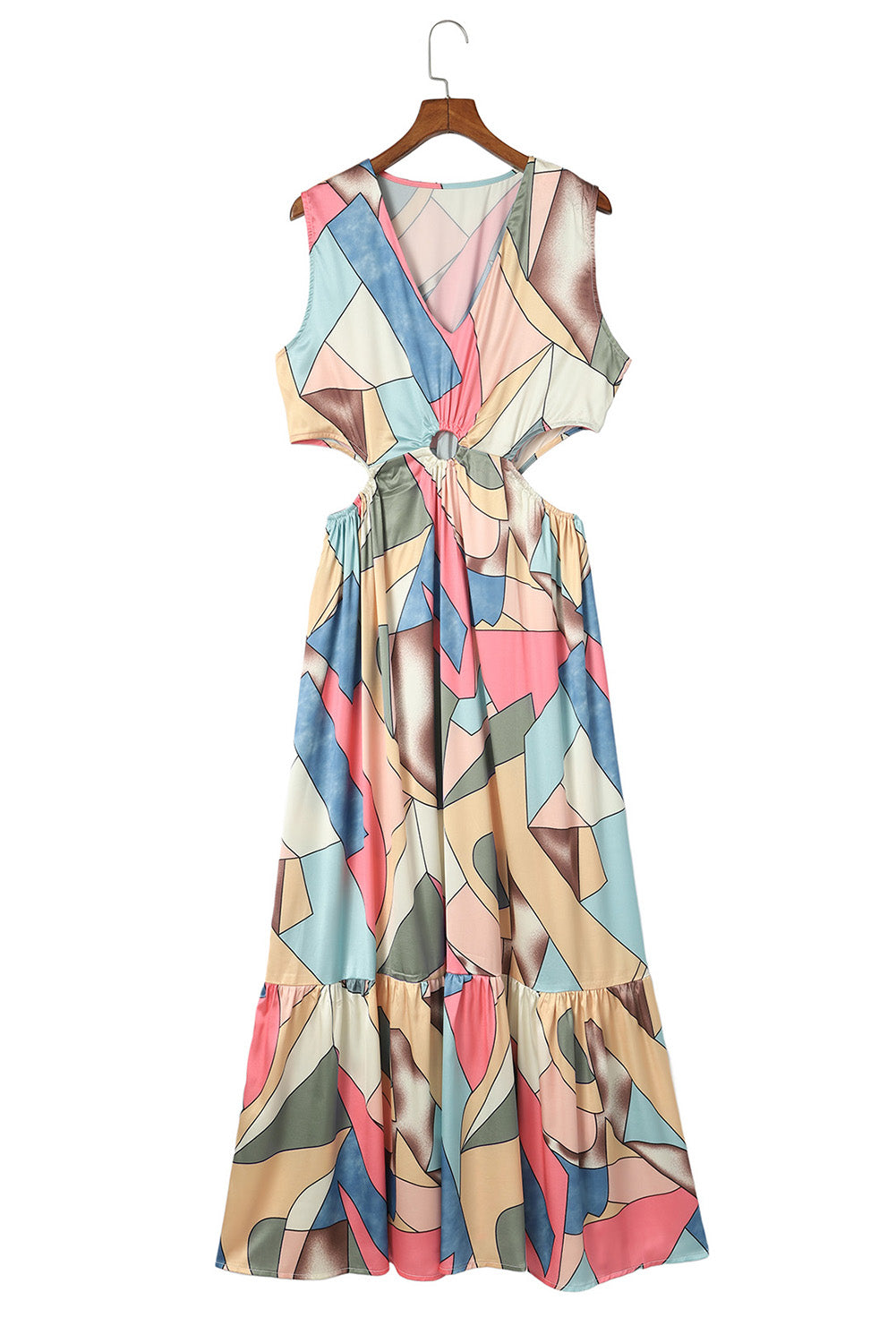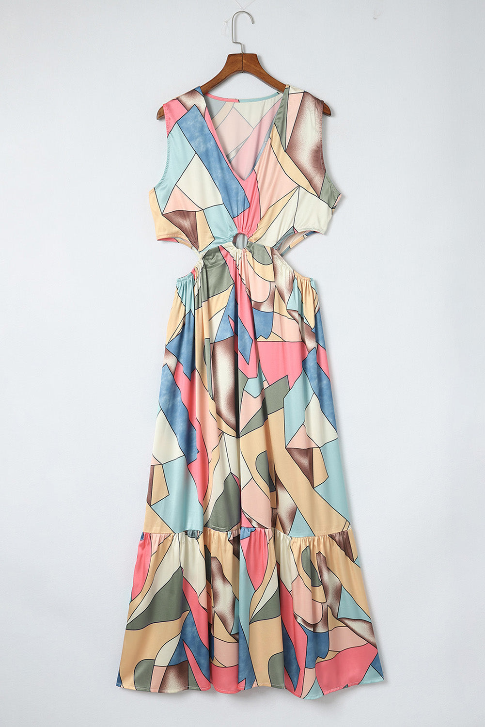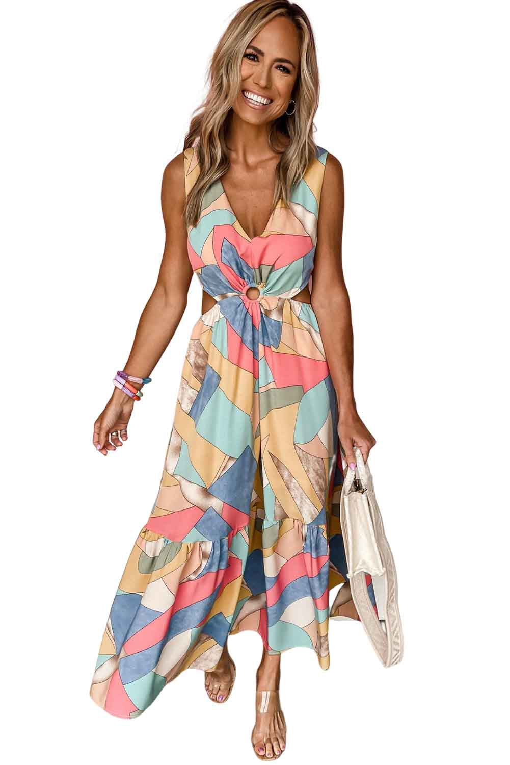 Khaki Boho Print O-ring Cut-out Sleeveless Maxi Dress