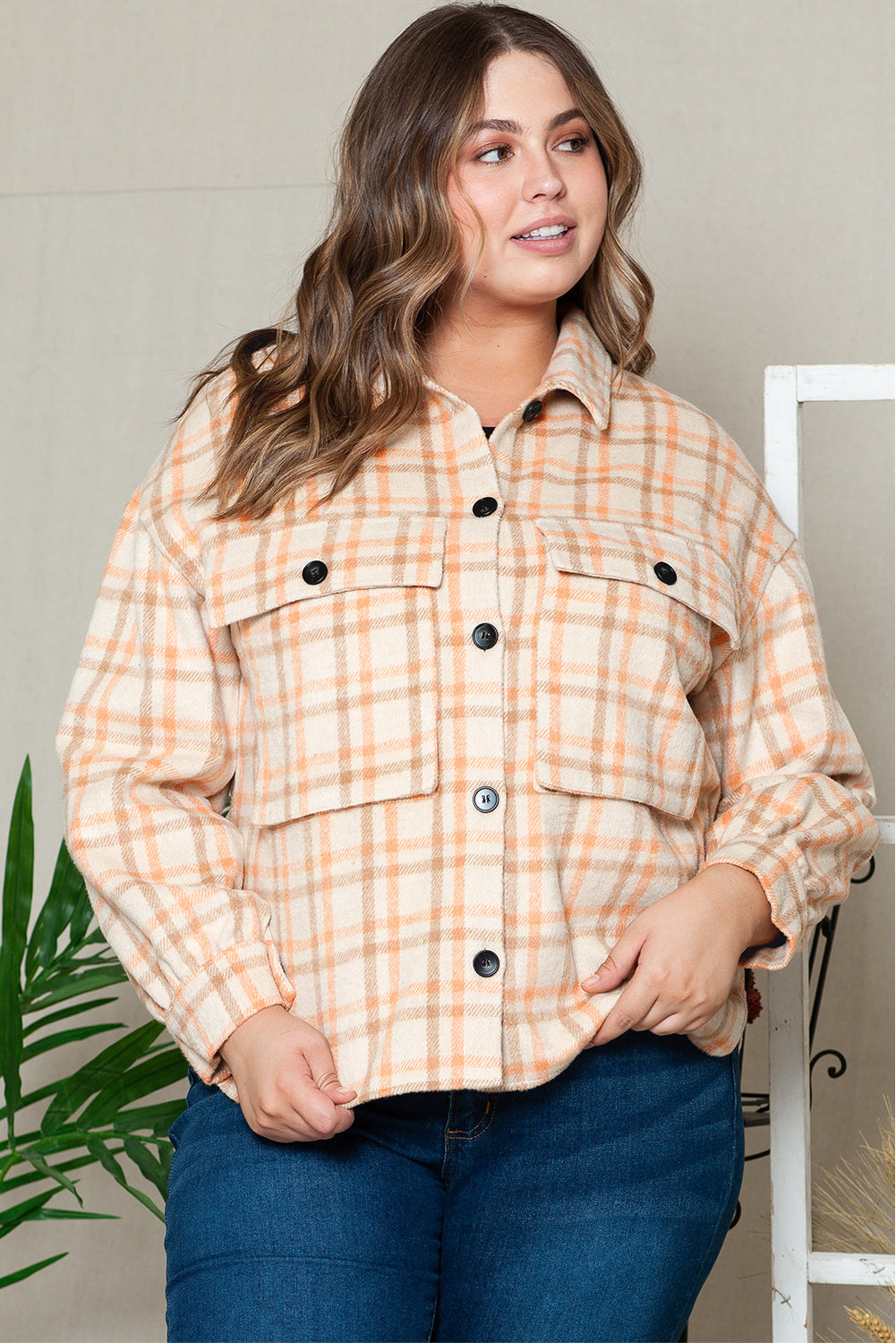 Khaki Plus Size Plaid Jacket with Flap Pockets