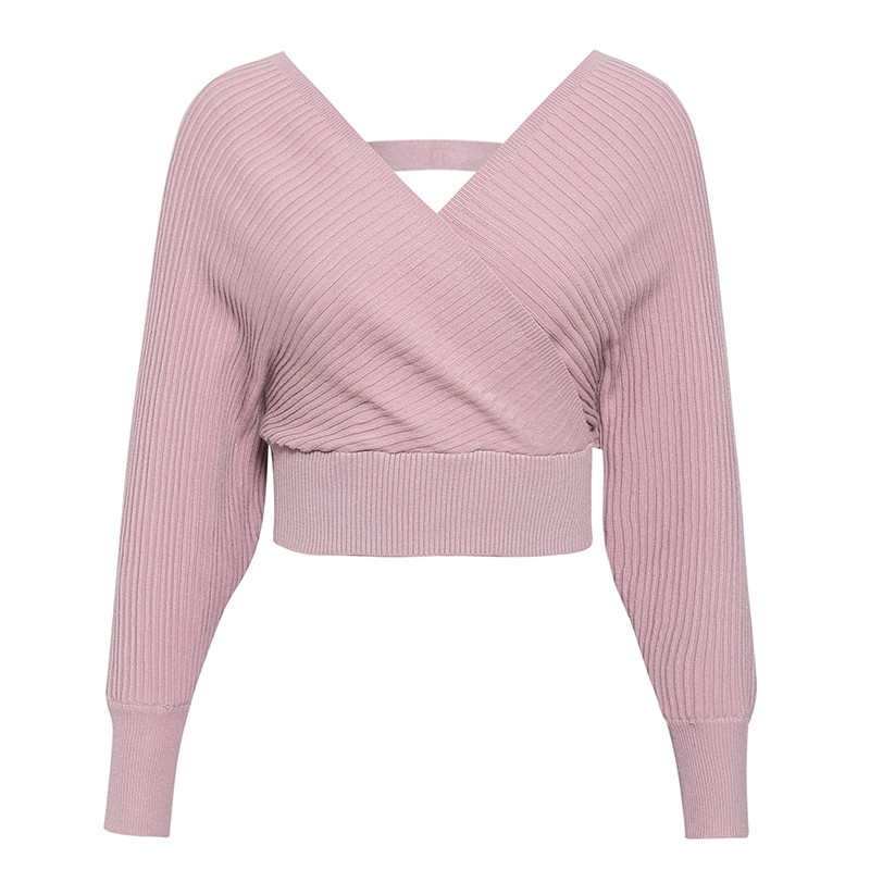 Knitting V neck off Shoulder Set Dress Sweater