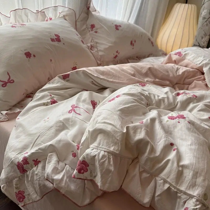 Korean Princess Duvet Cover Set Skin Friendly Wash Cotton Bedding Set Of Four Pieces Lace Bedin Set Bed Sheets Comforter Cover