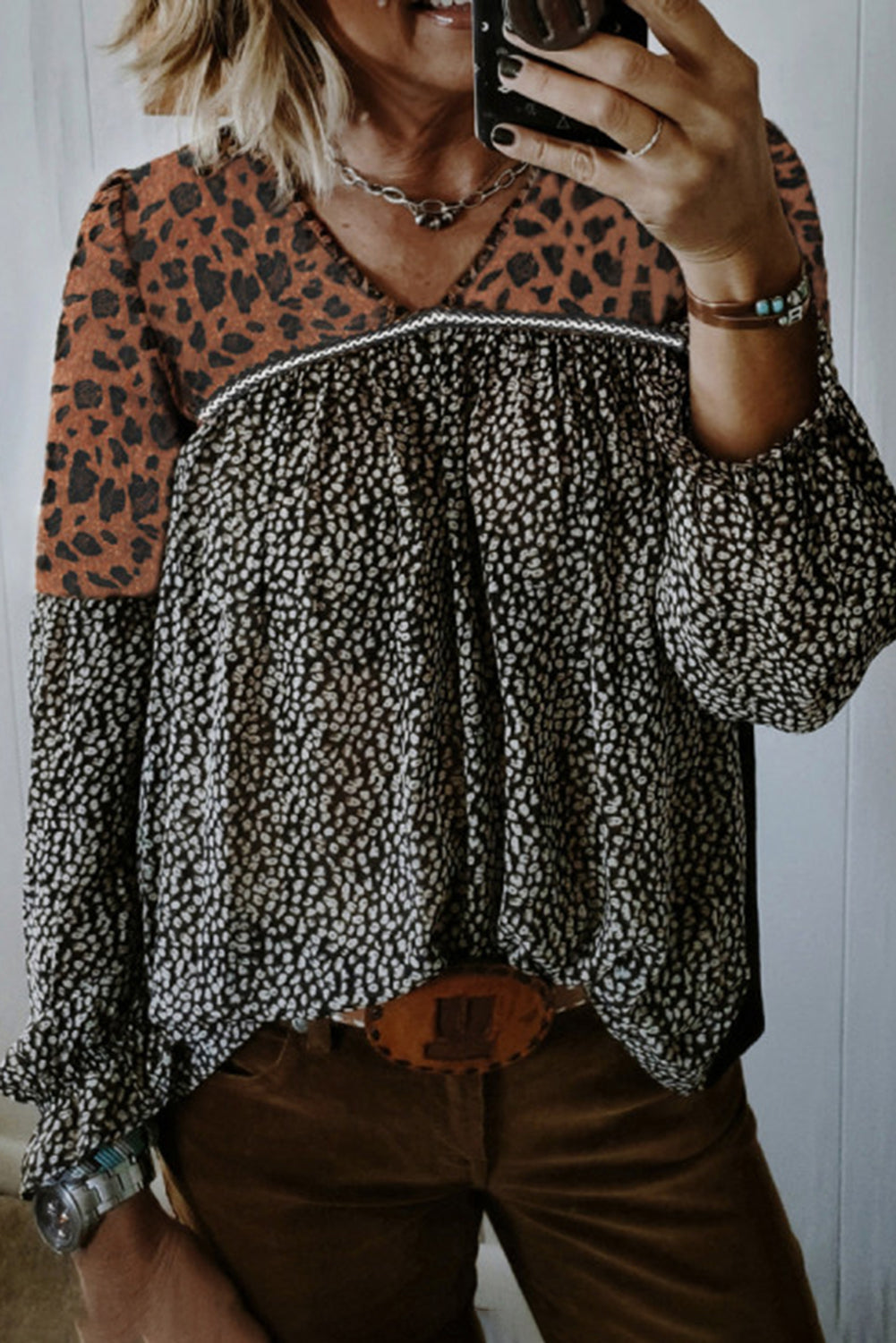 Leopard Patchwork Long Sleeve Top
