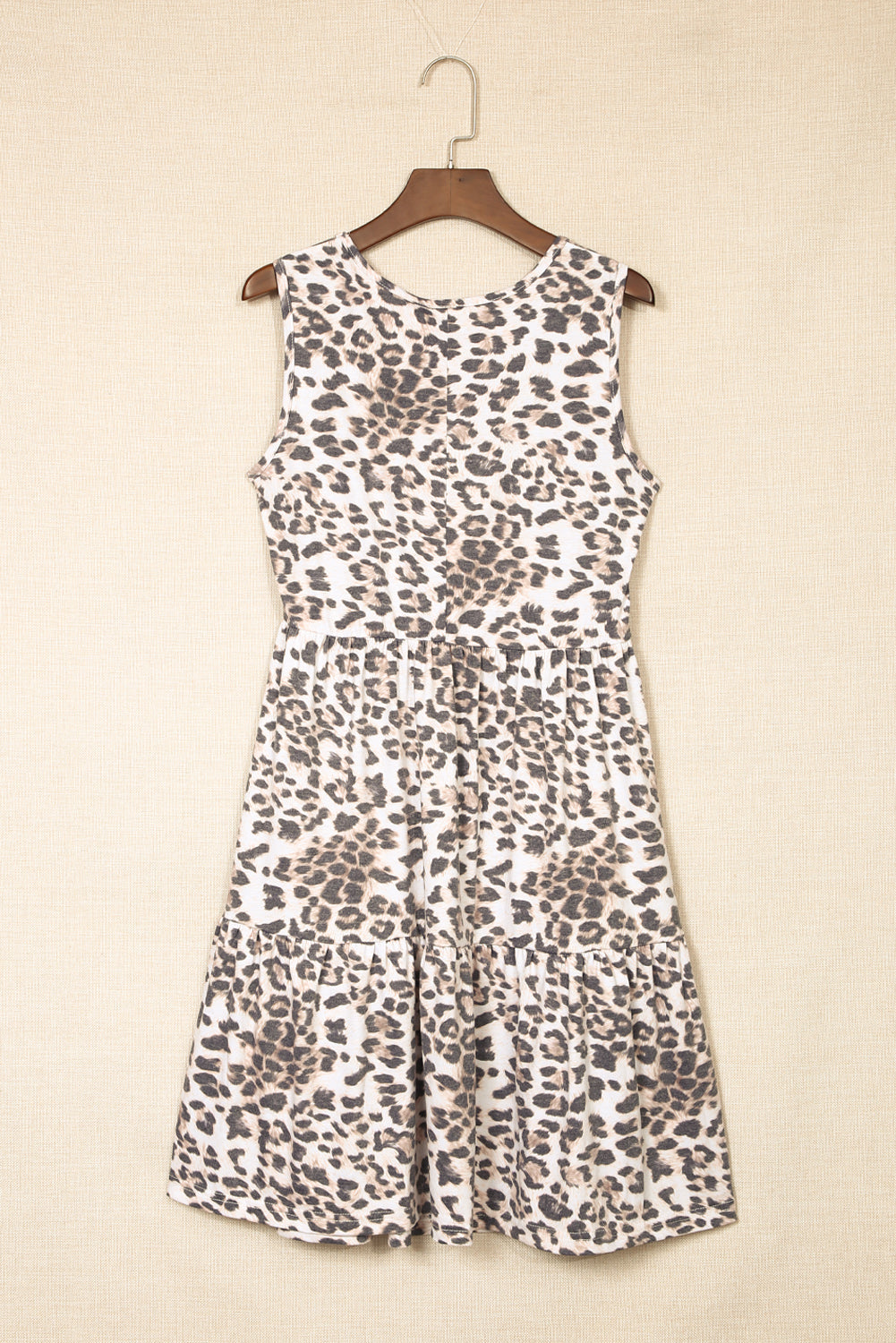 • Let your style get a little wild with our adorable Leopard Print Layered Ruffled Sleeveless Mini Dress