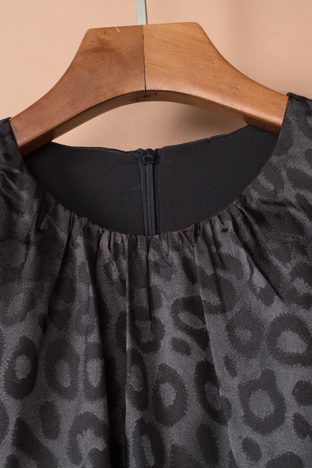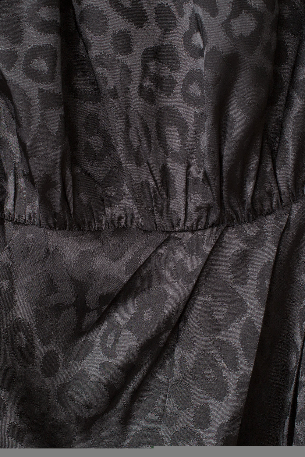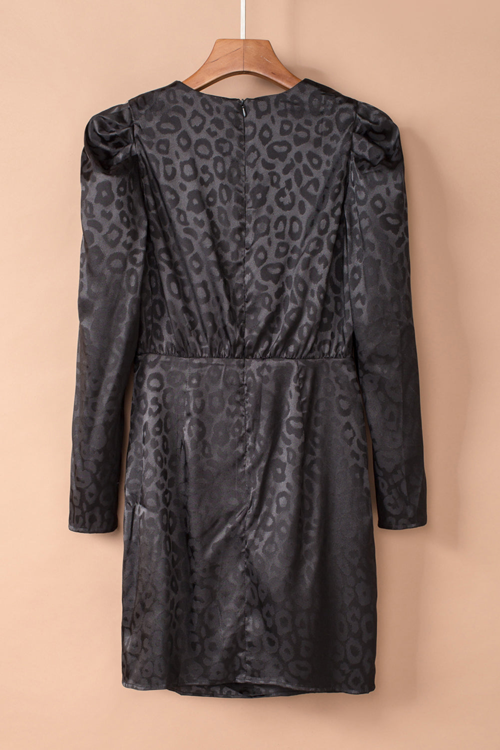 • Round neck. puff sleeves. ruched detail front and thigh-high length