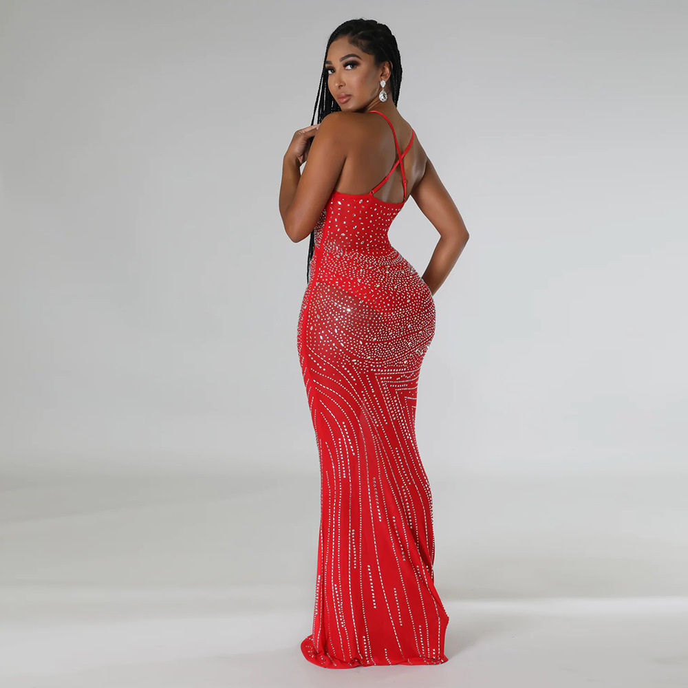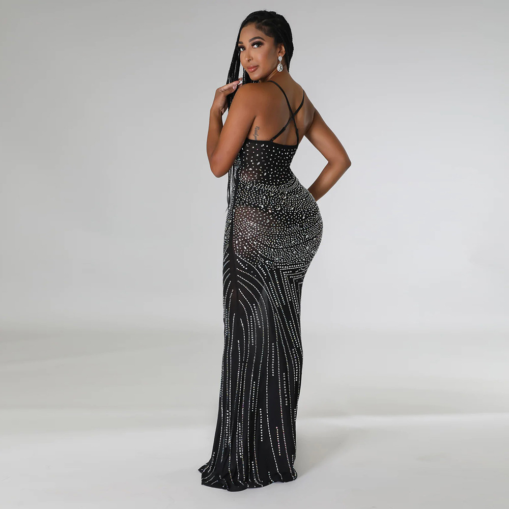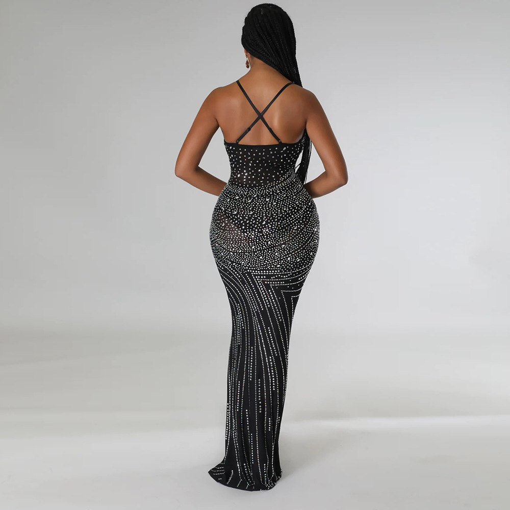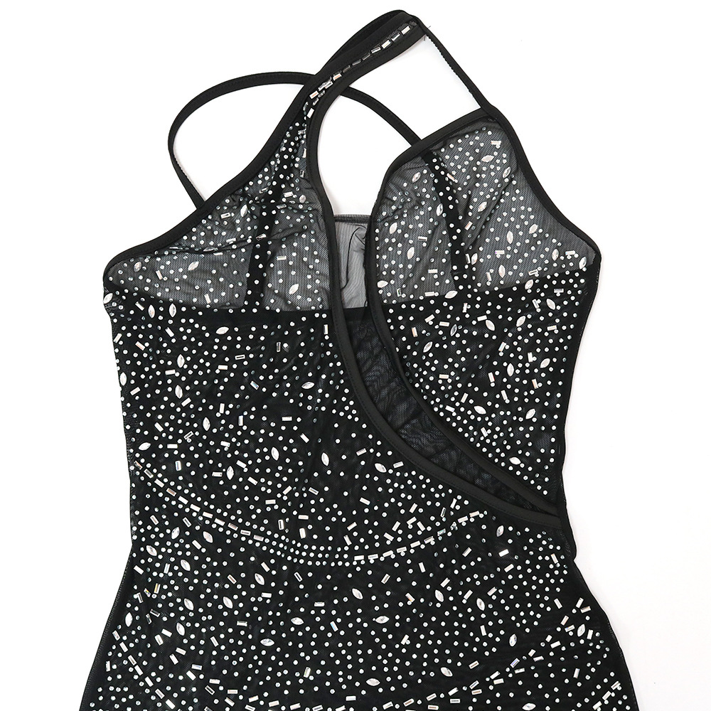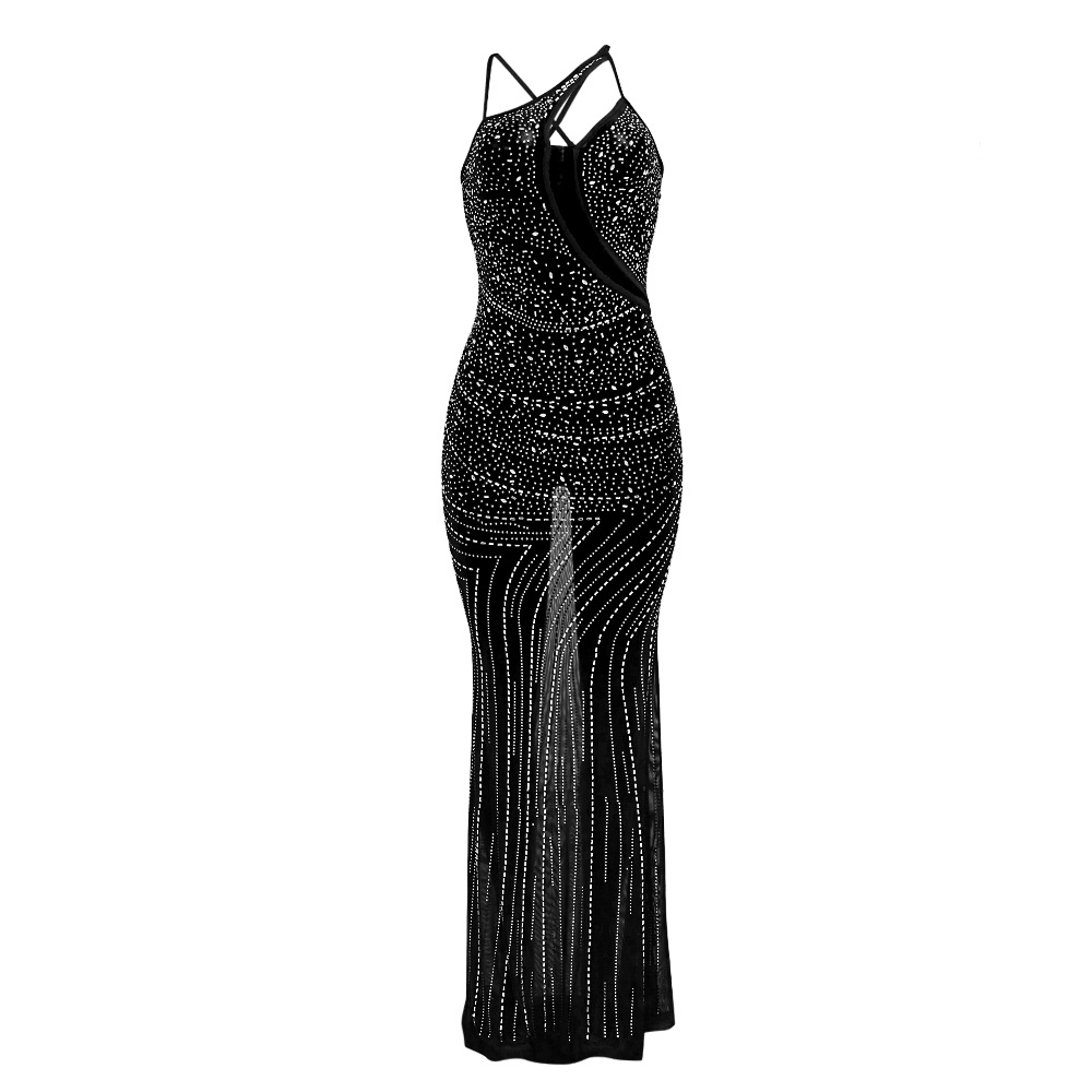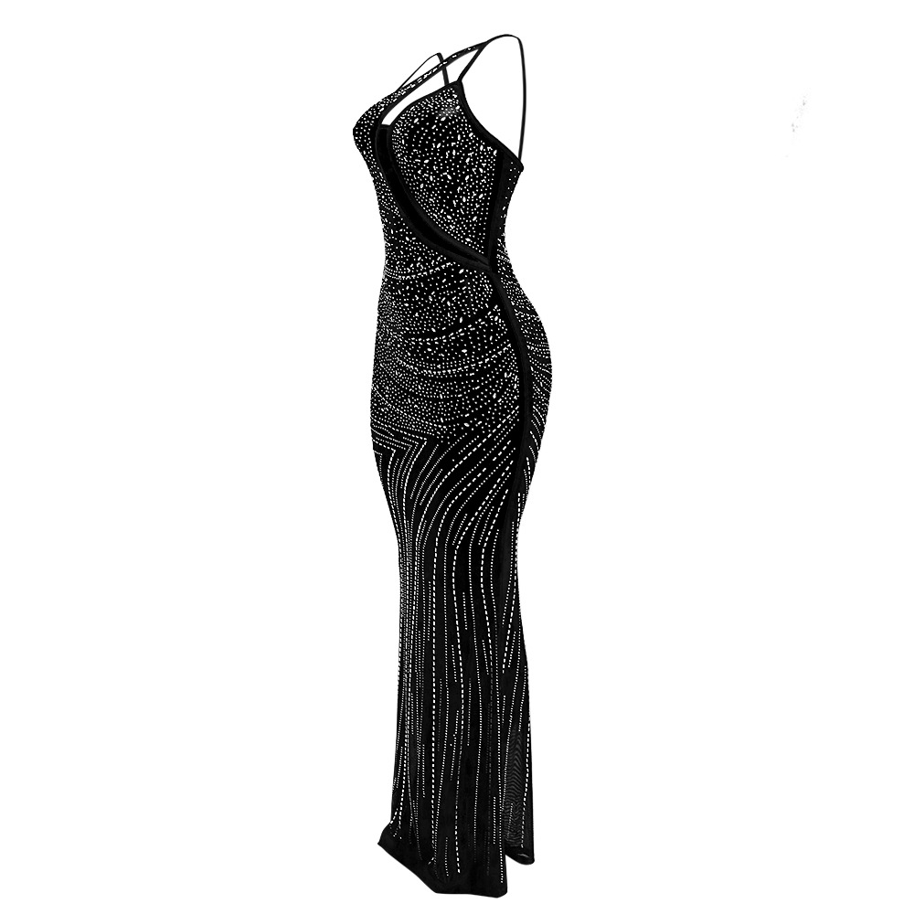 Mesh Direct Tribute Shoulder Rhinestone Slim Dress
