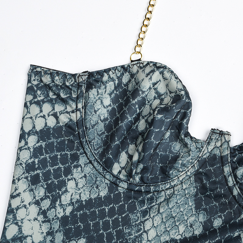 Metal Chain Halter Snake Pattern Sexy Backless Body Shaping Dress Two Piece Set