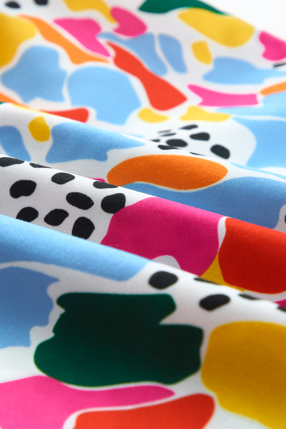 Multicolor Abstract Print High Neck Flutter Sleeves Top