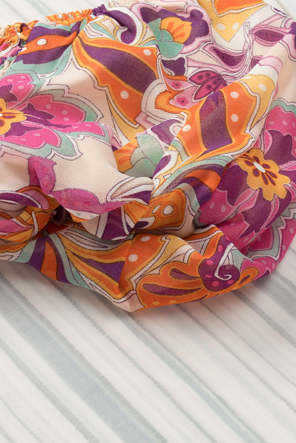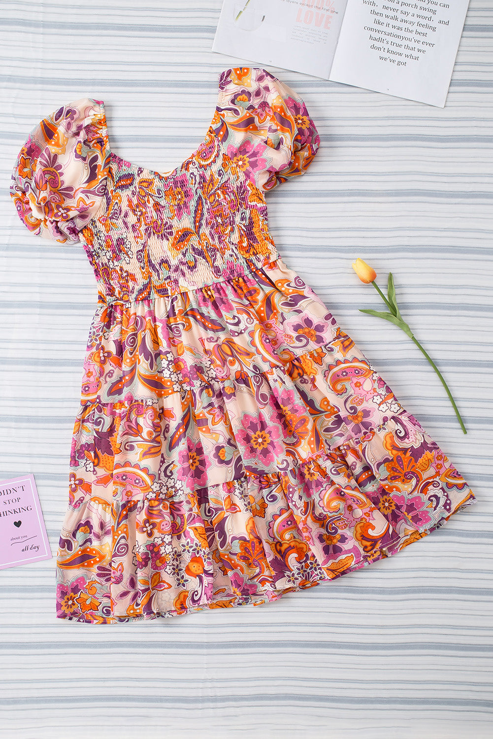 Multicolor Boho Print Smocked Ruffled Puff Sleeve Mini Dress
