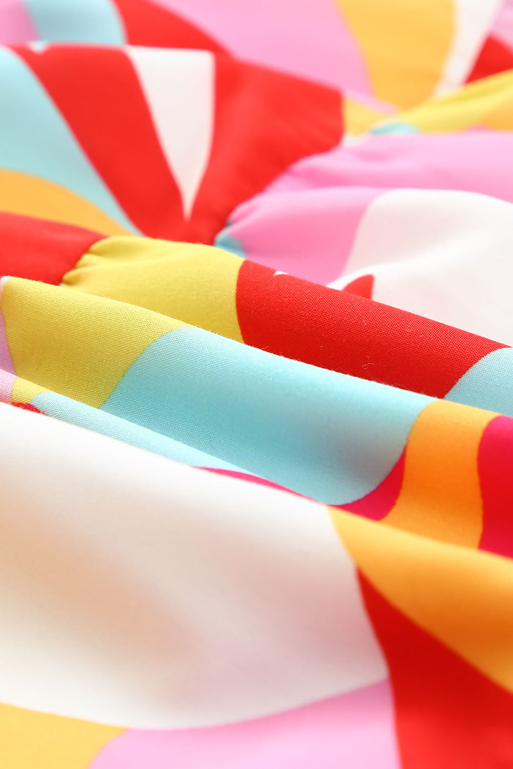 Multicolor Geometric Print Smocked Babydoll Mini Dress