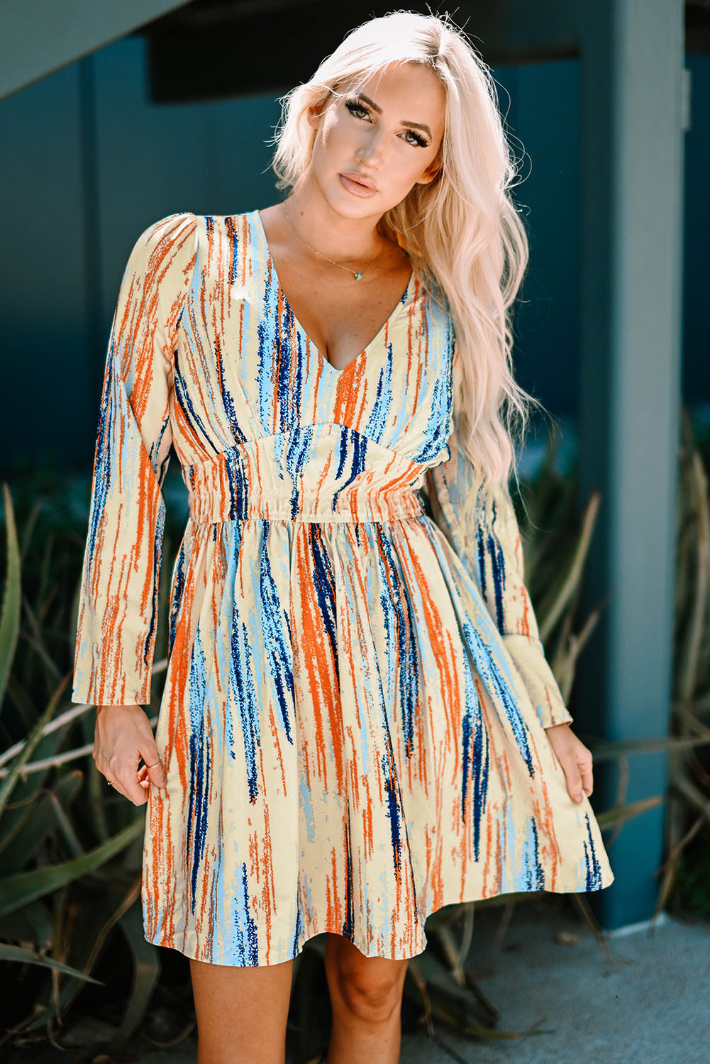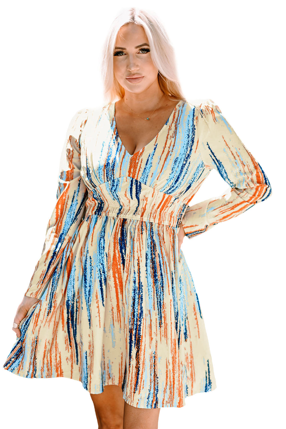 Multicolor Watercolor Printed Long Sleeve Mini Dress
